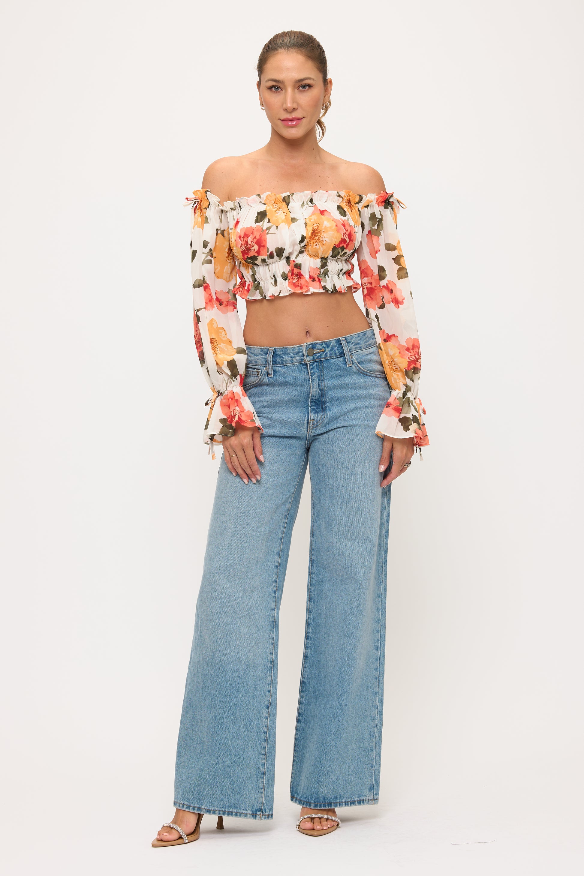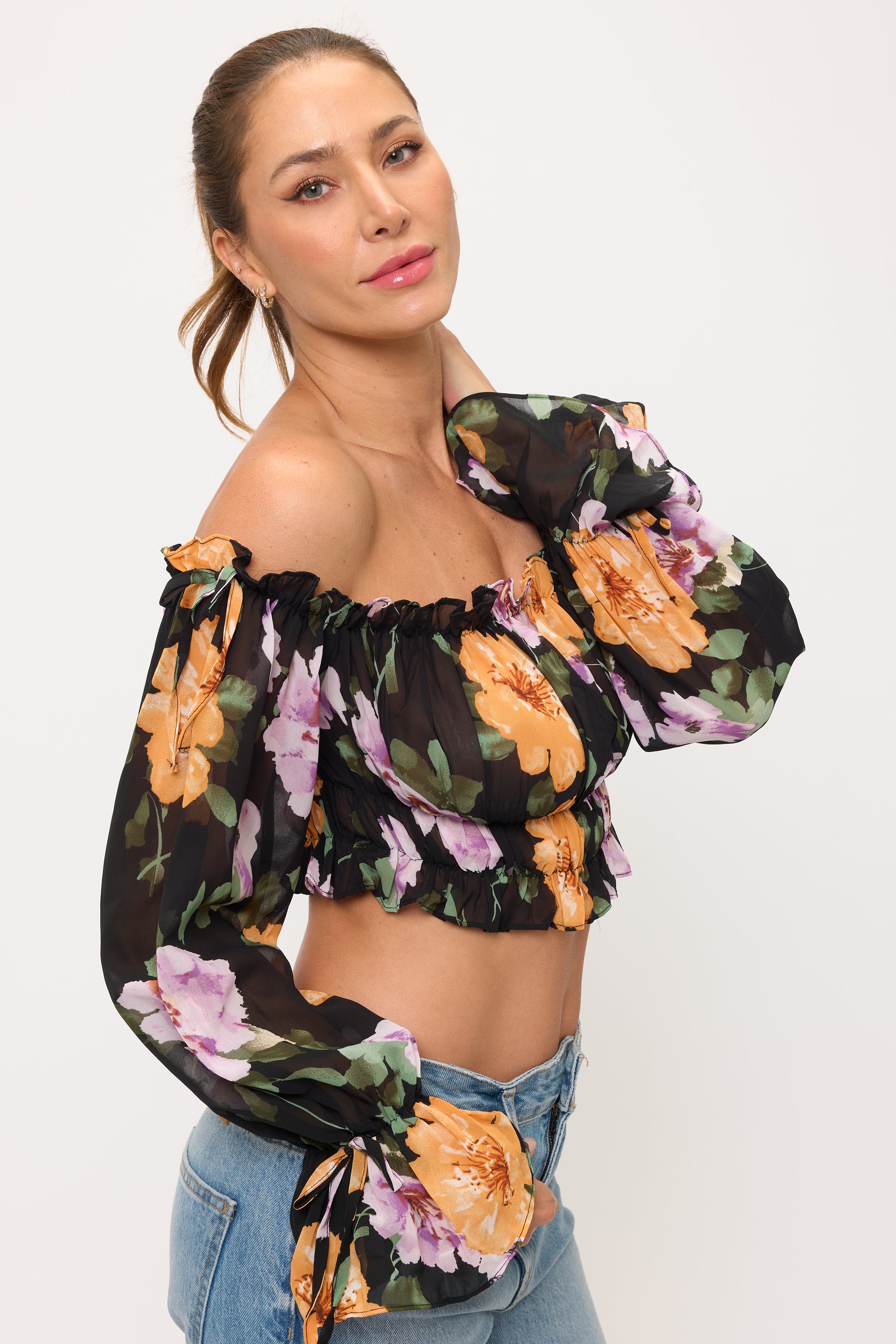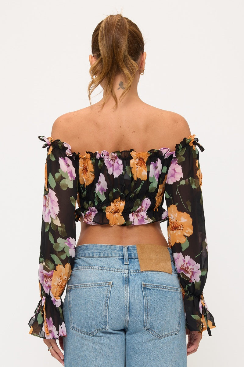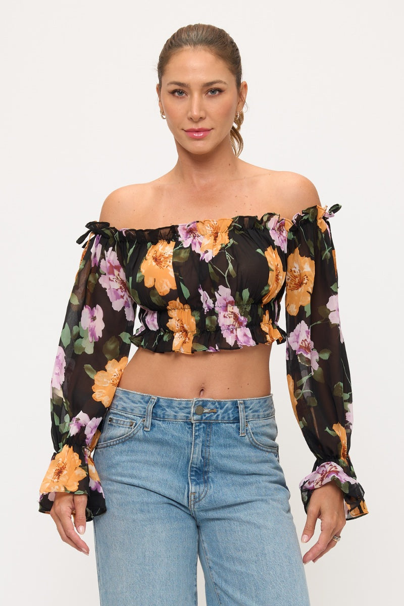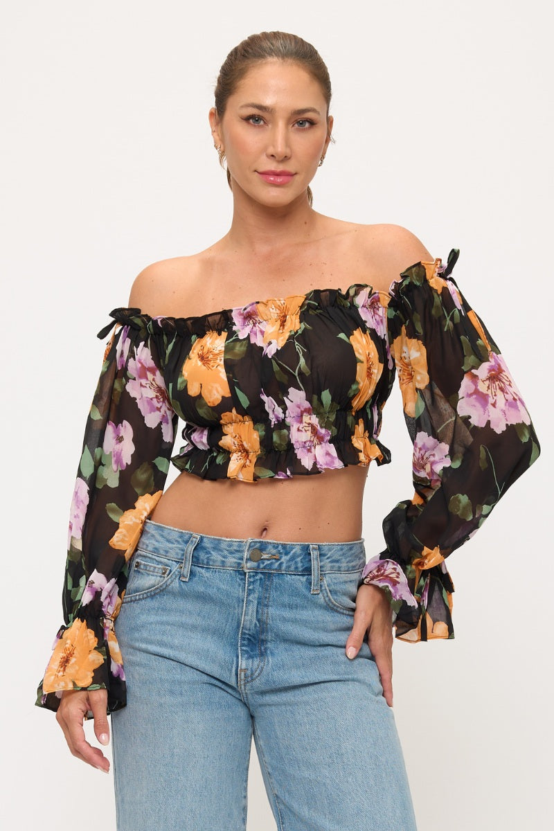 Floral Off Shoulder Ruffle Crop Top