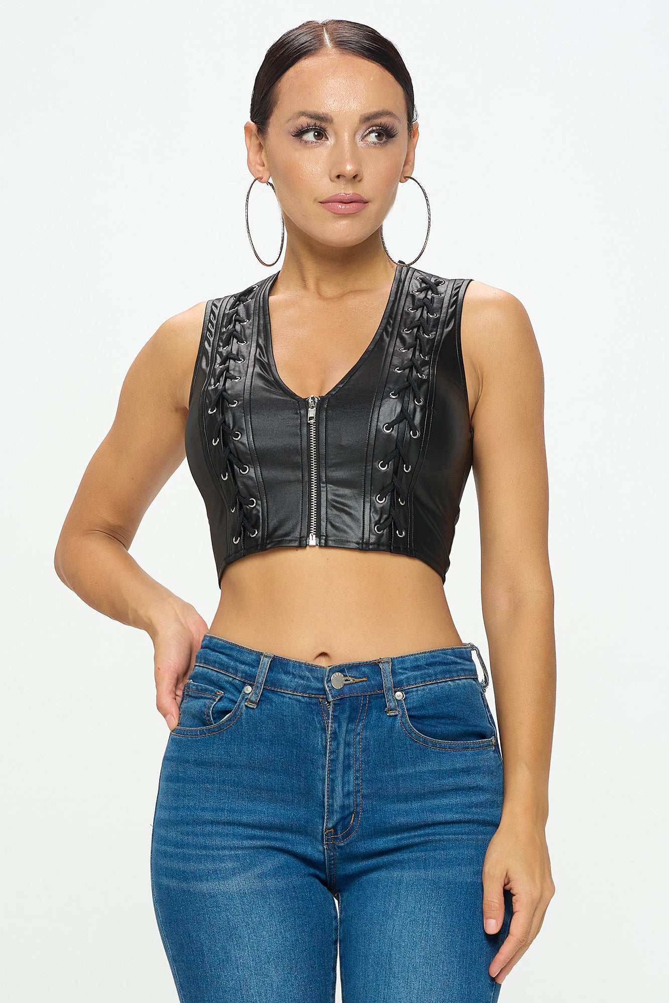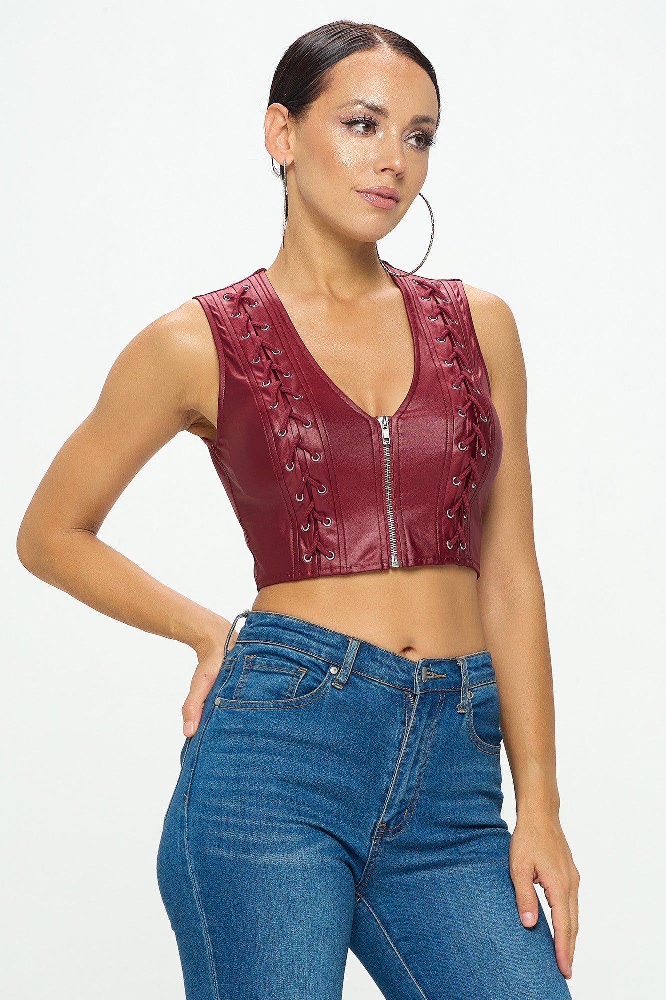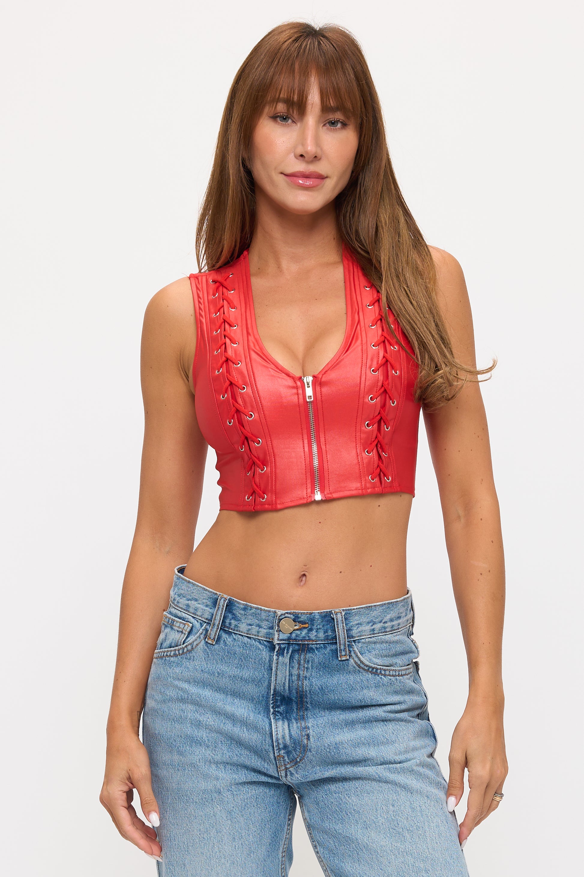 LACE-UP DETAIL SLEEVELESS CROP TOP