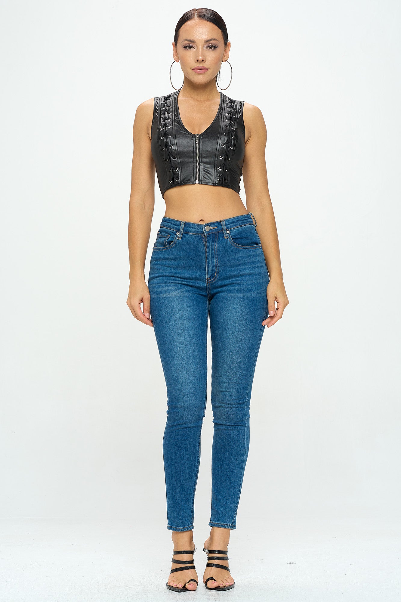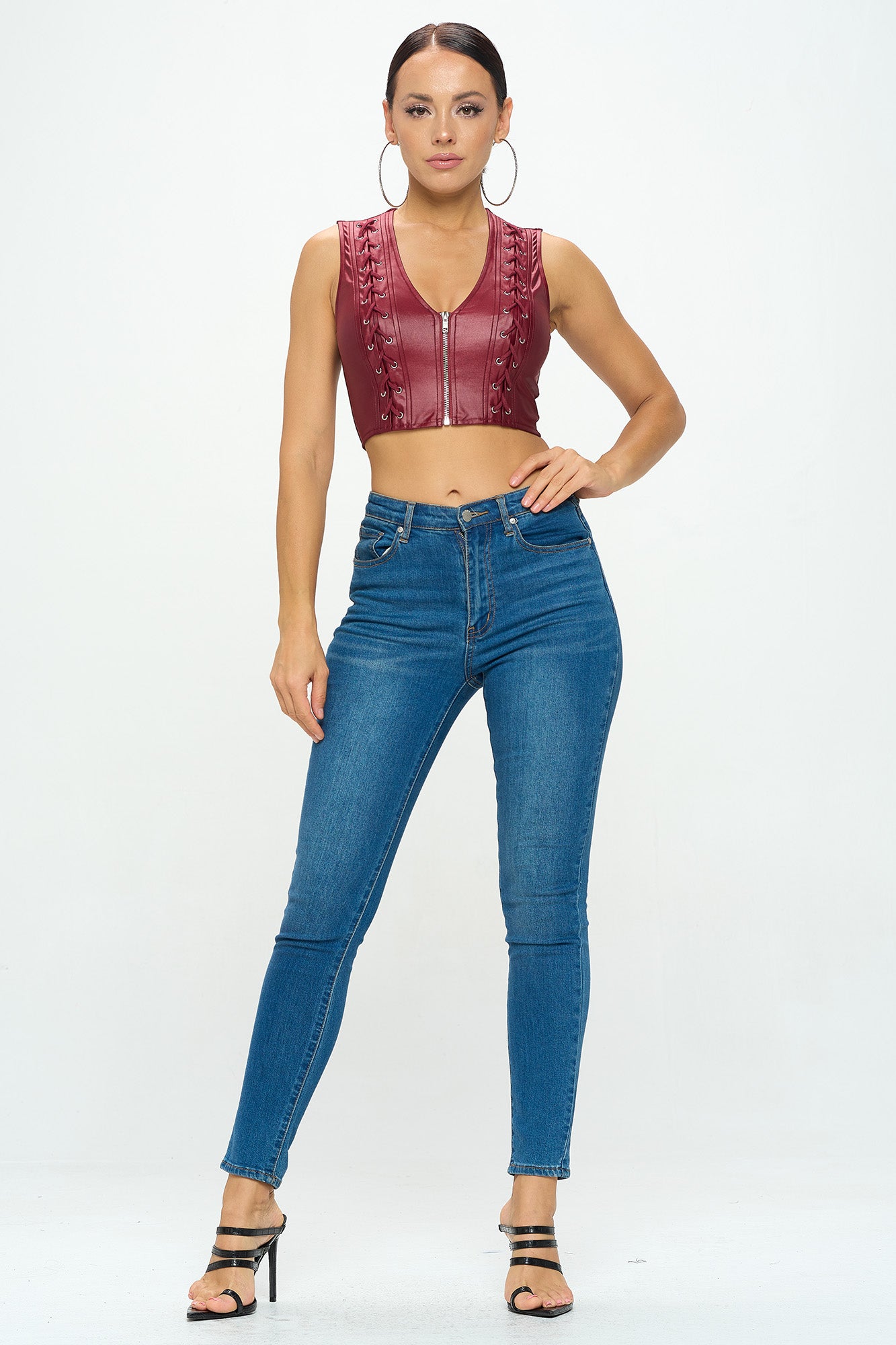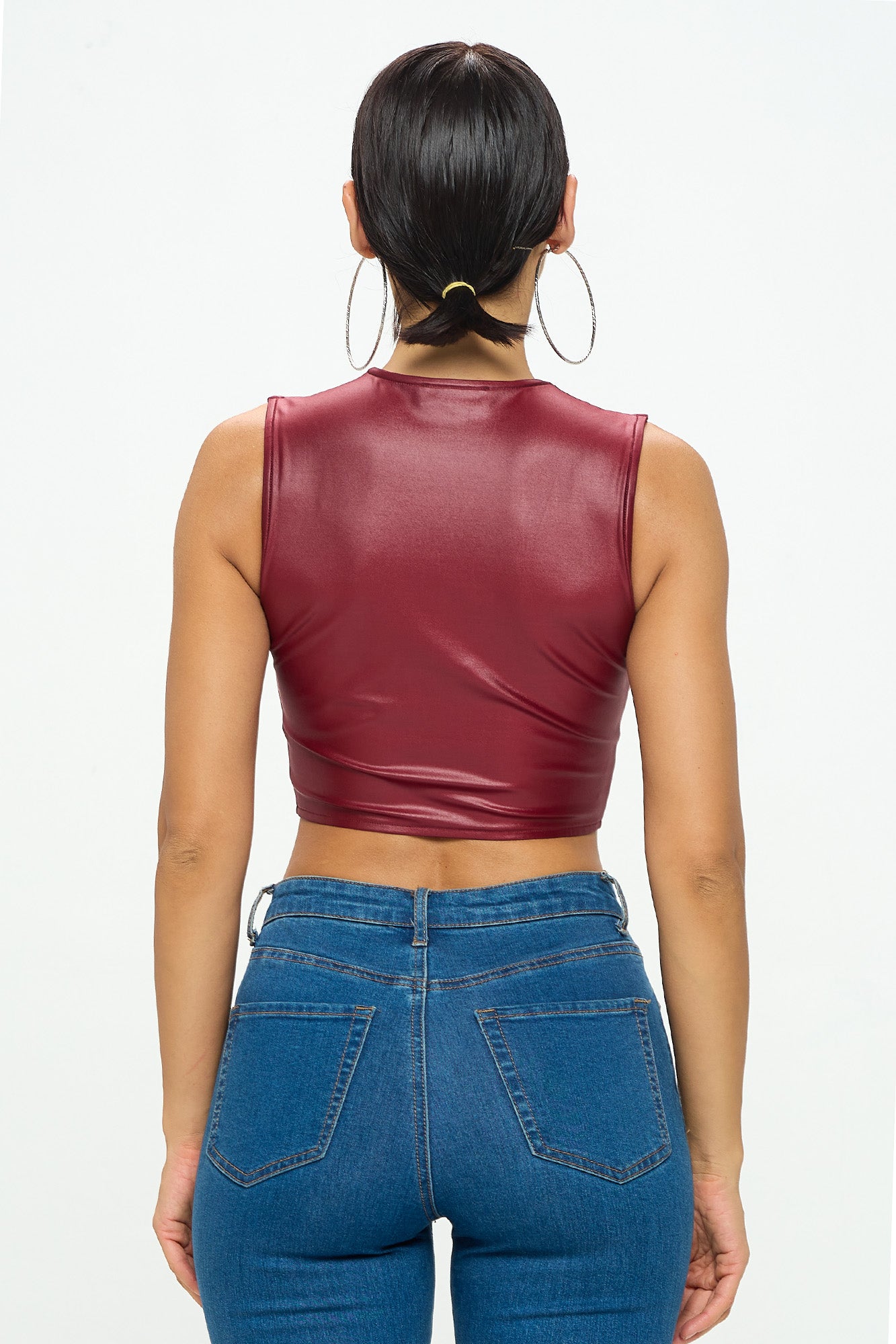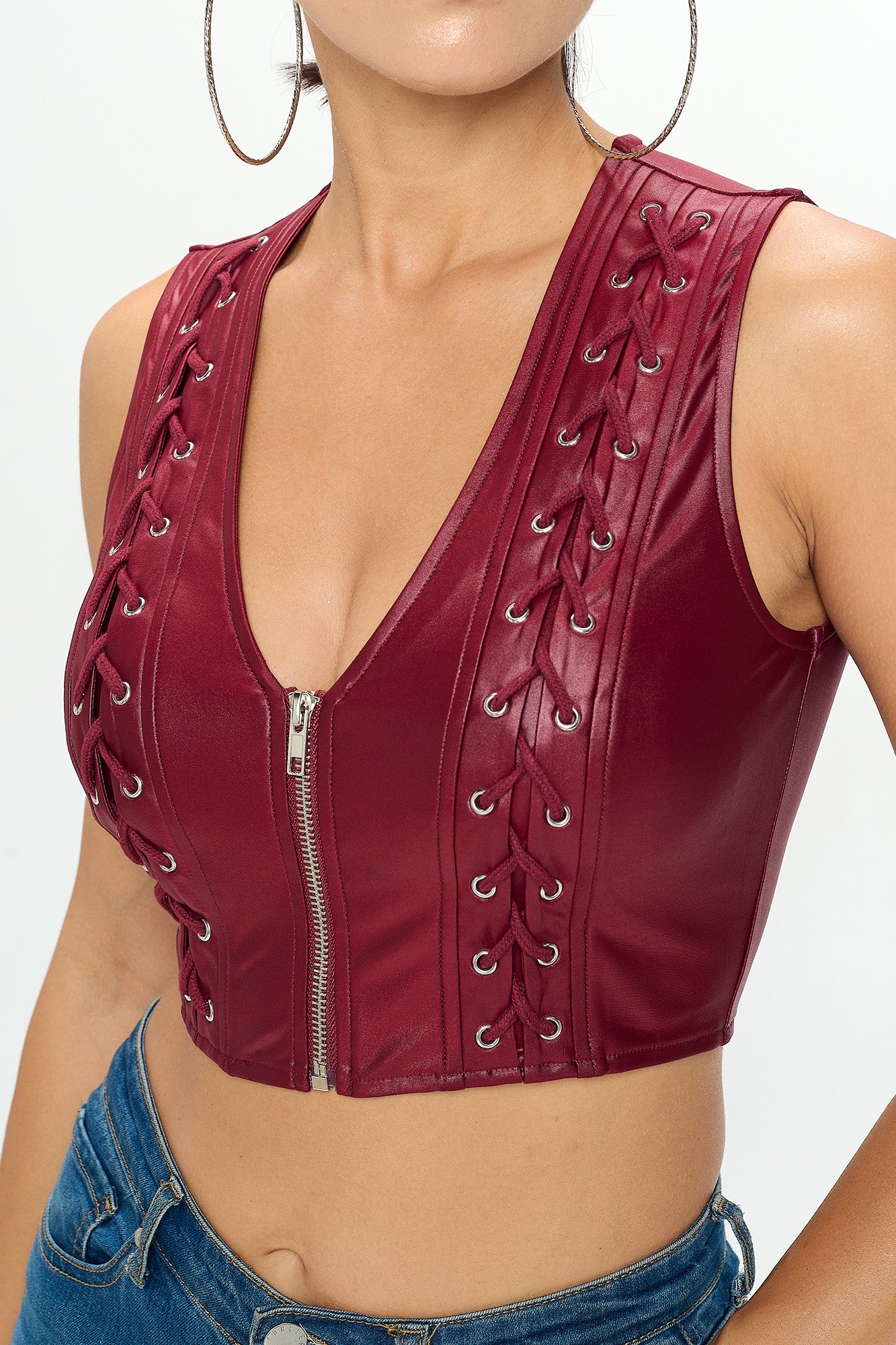 LACE-UP DETAIL SLEEVELESS CROP TOP