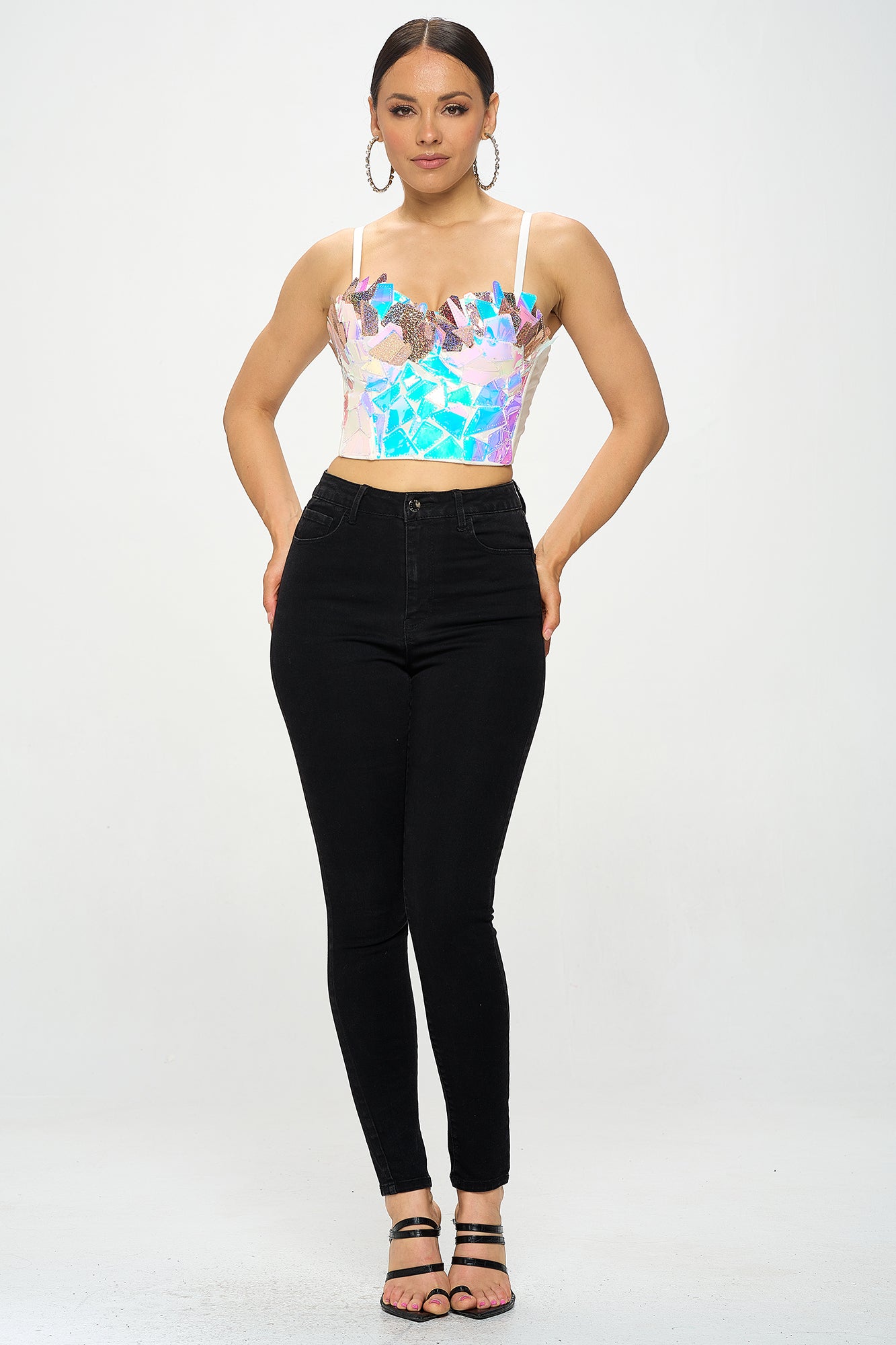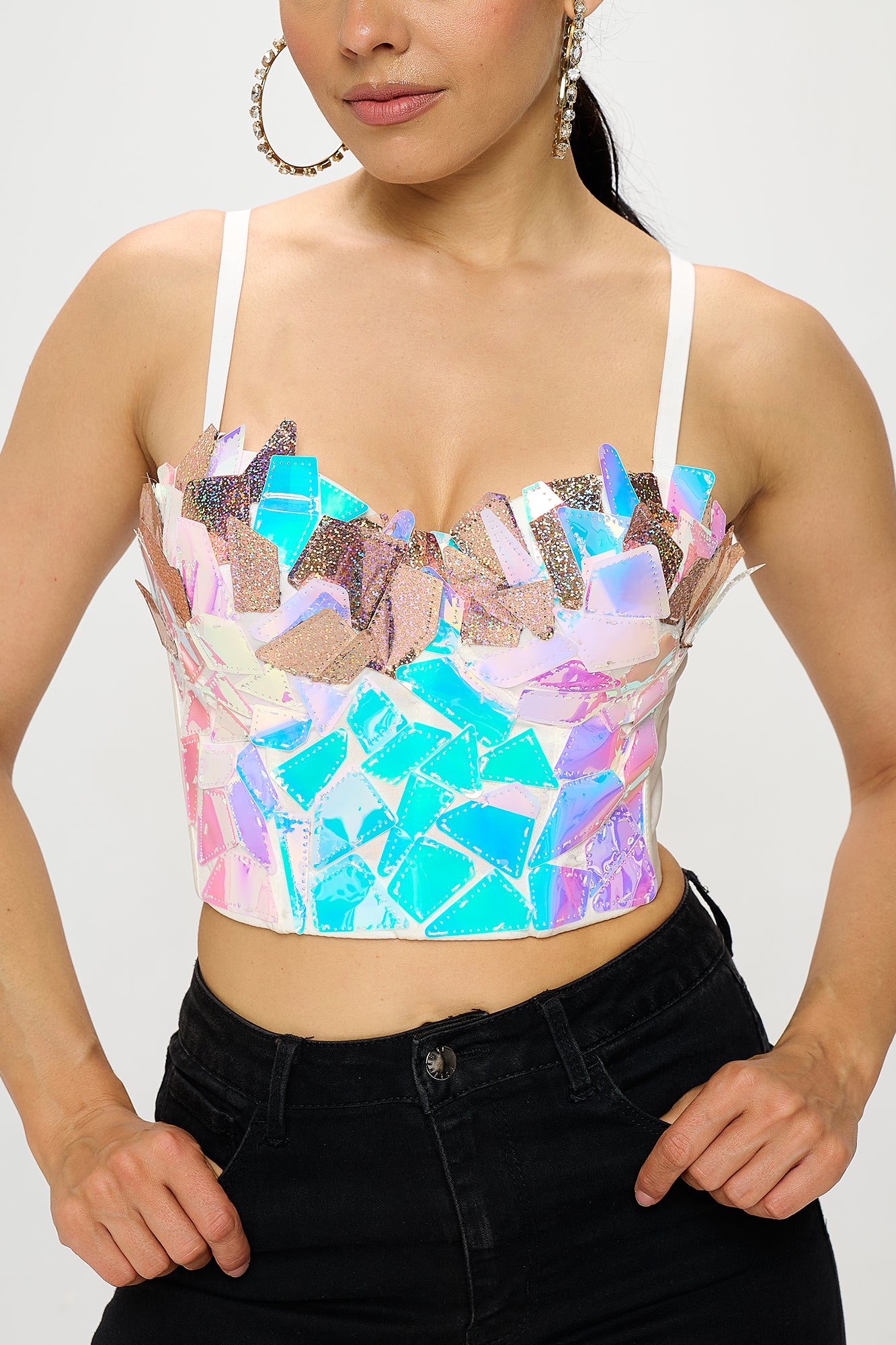 IRIDESCENT TRIANGLE HOLOGRAPHIC BUSTIER CROP TOP_D7202