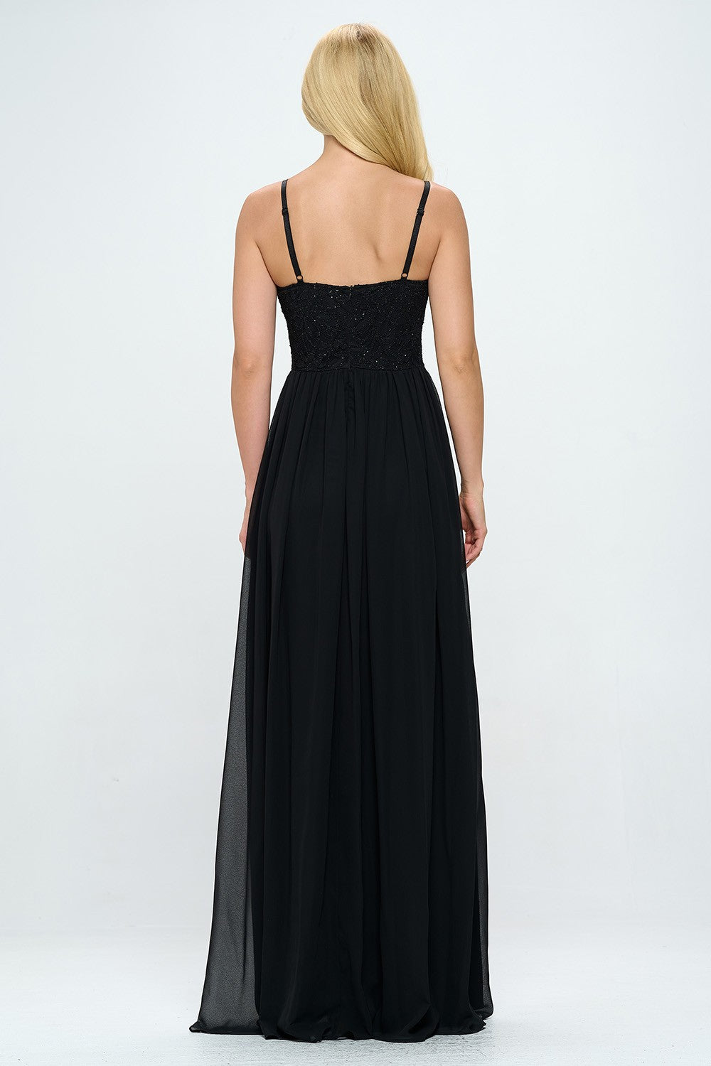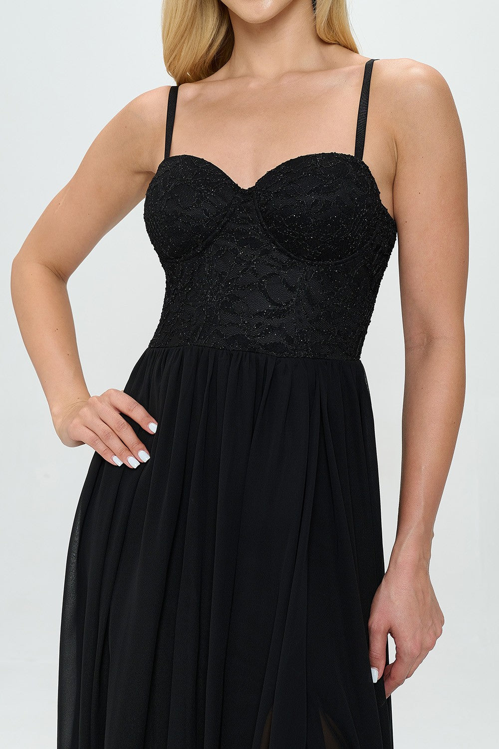 LACE DETAIL BUSTIER BODICE FLOOR LENGTH SLITTED DRESS