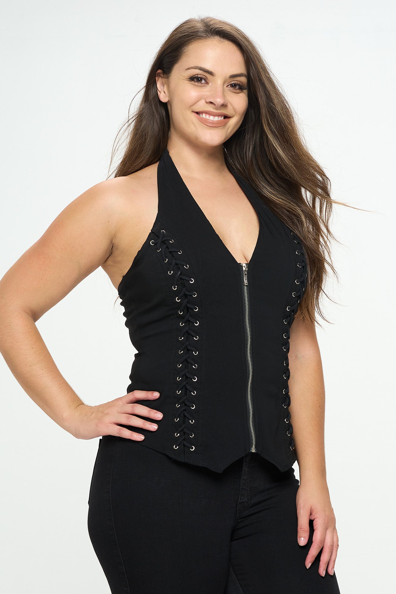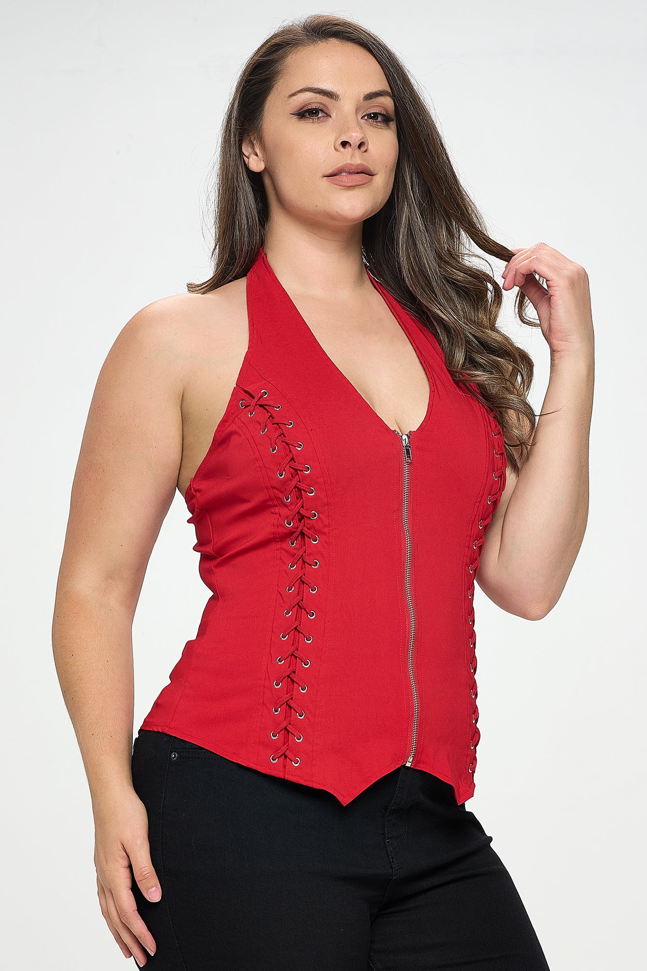 LACE UP DETAIL HALTER PLUS_D6838P