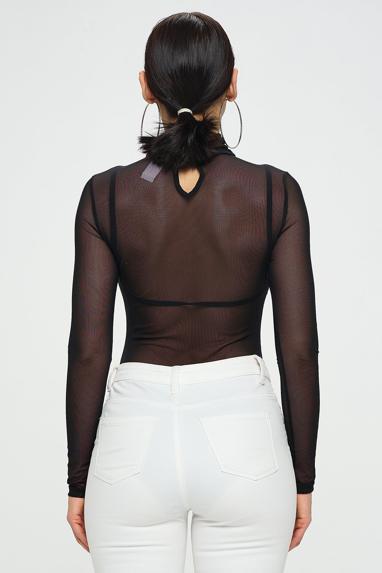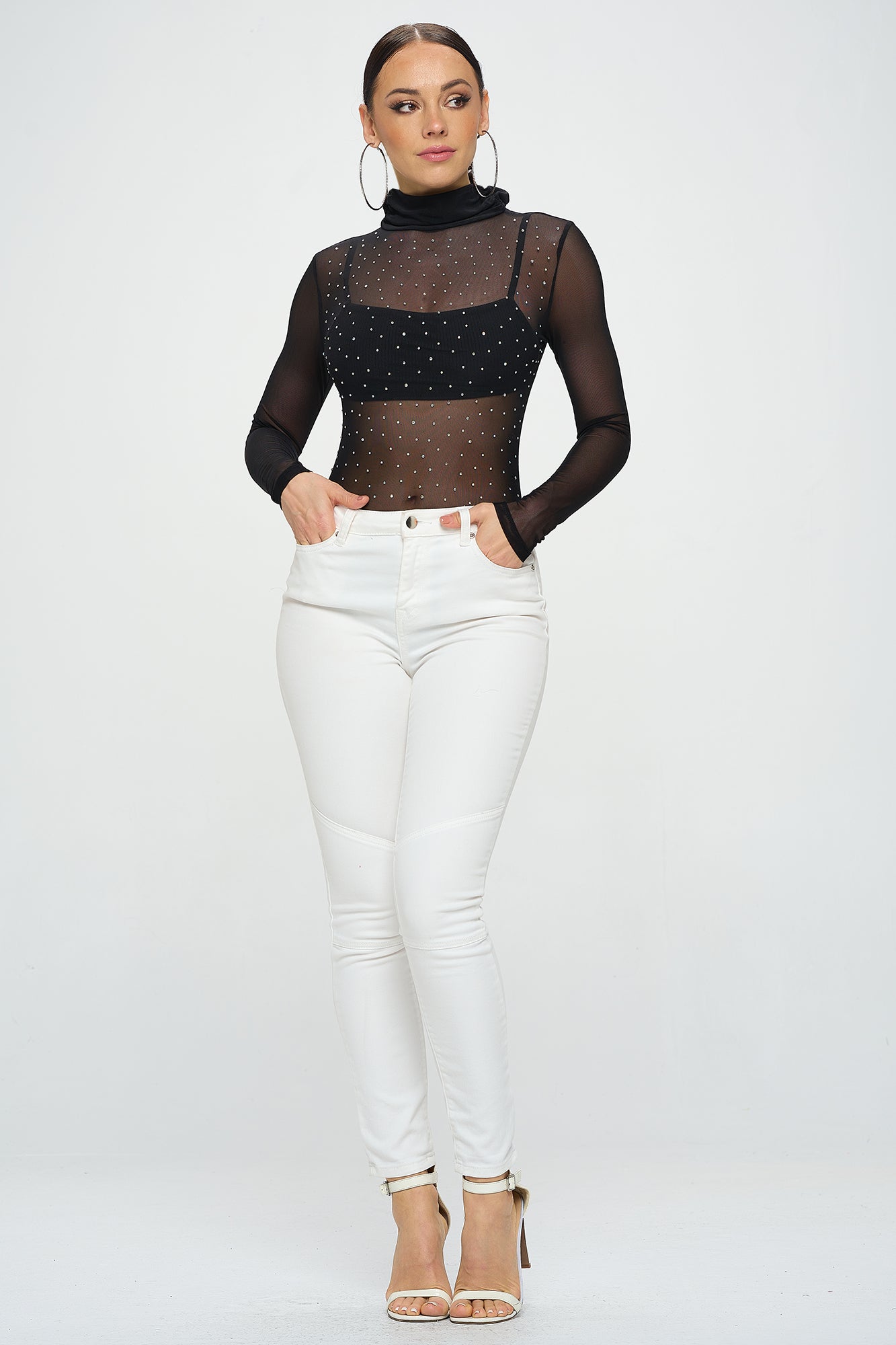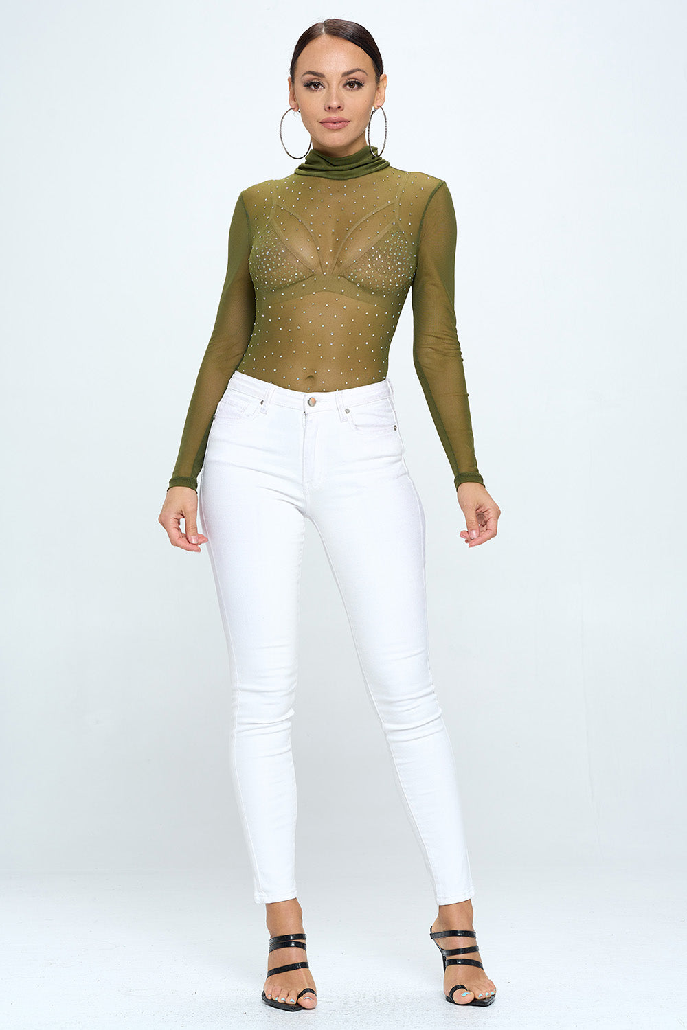 LONG SLEEVE MOCK NECK RHINESTONE MESH BODYSUIT