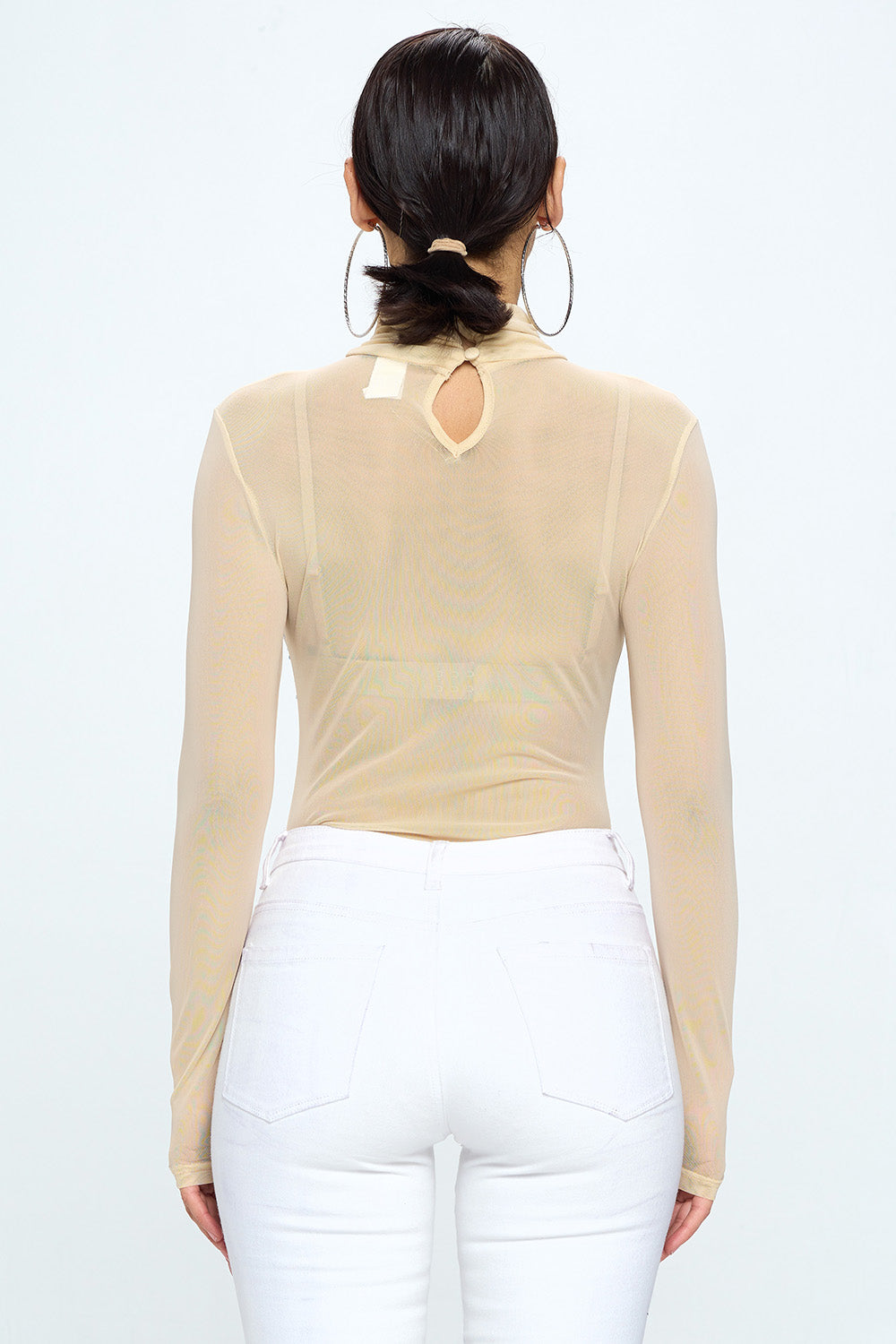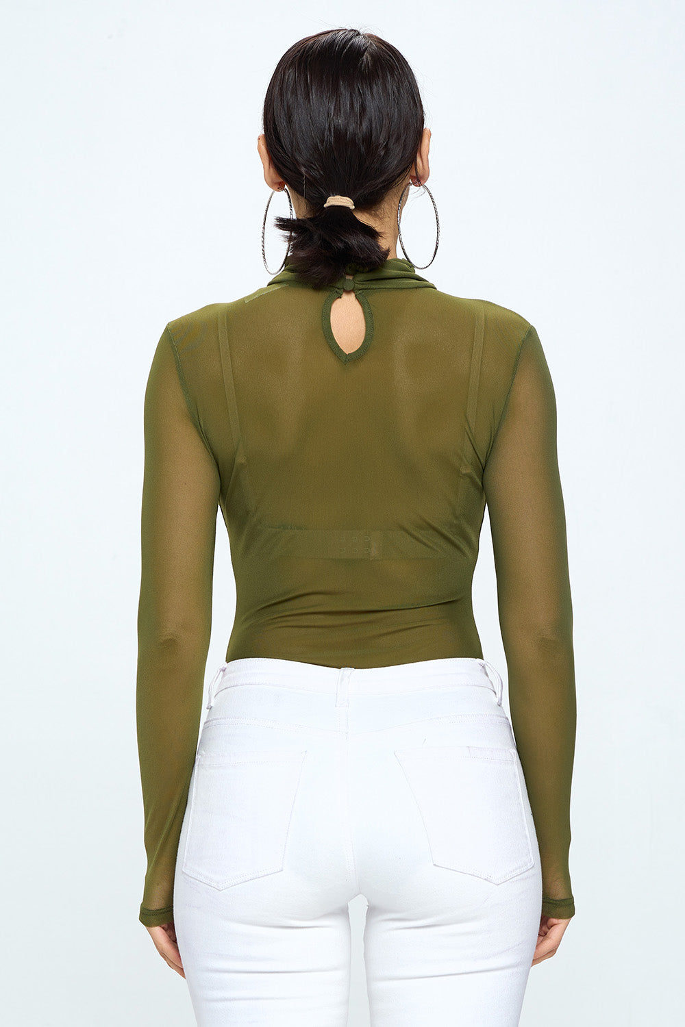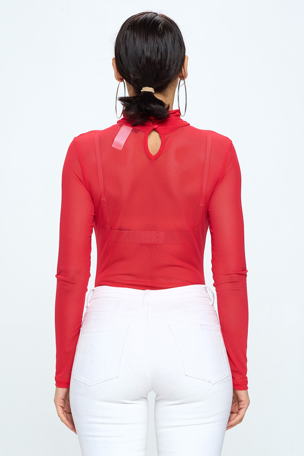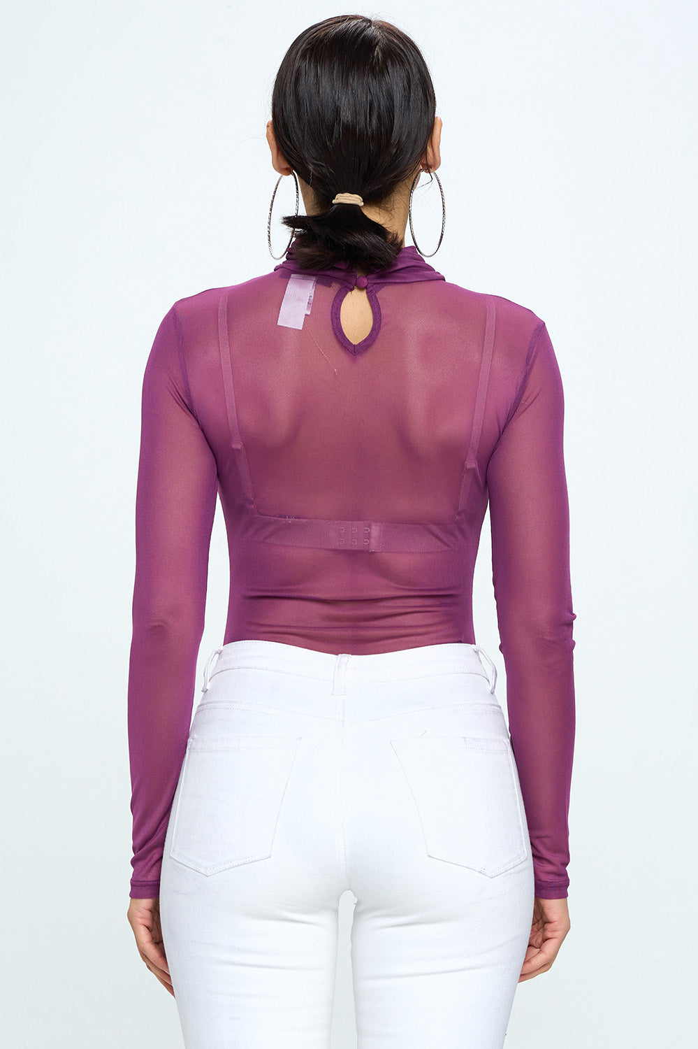 LONG SLEEVE MOCK NECK RHINESTONE MESH BODYSUIT