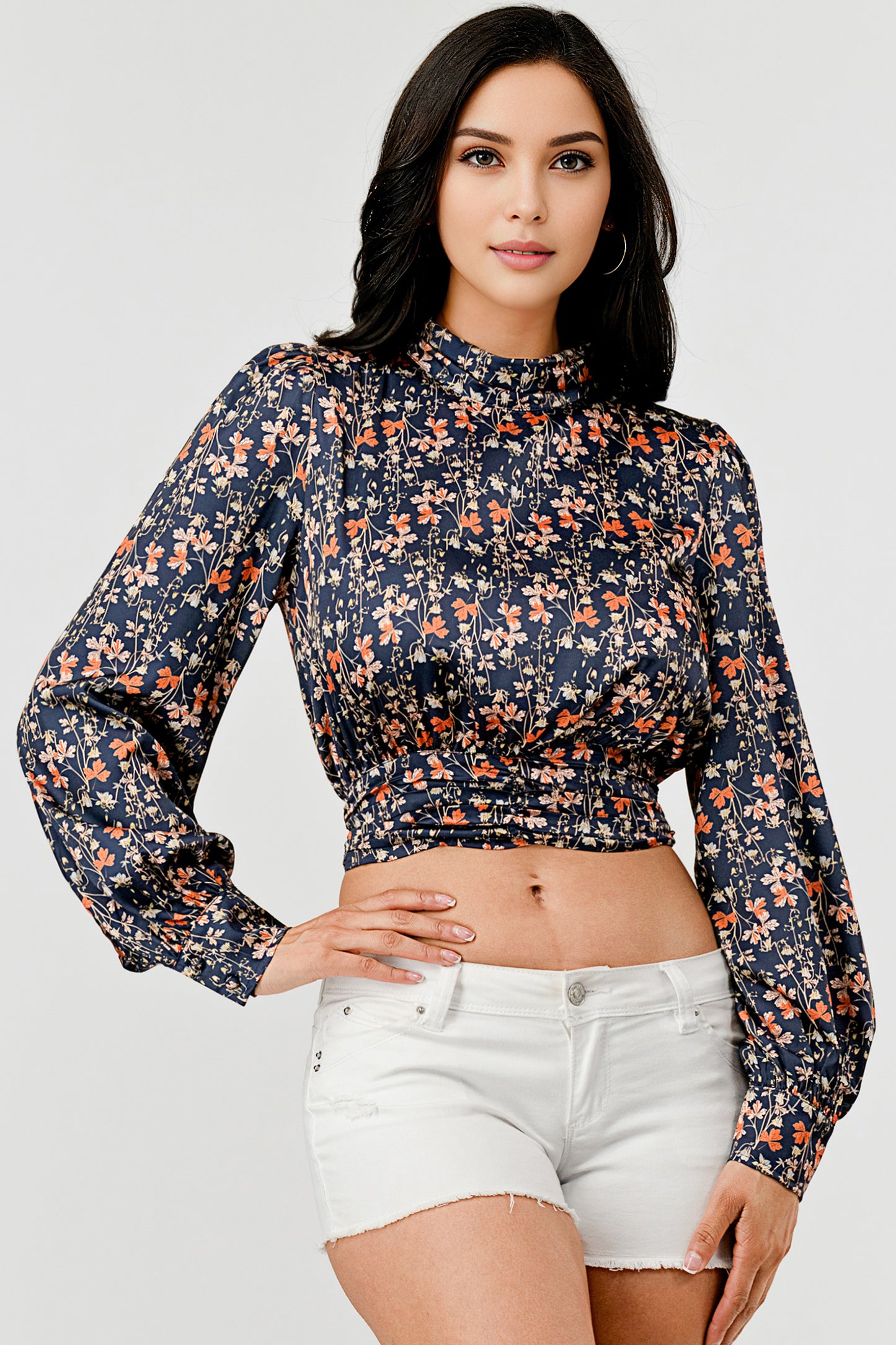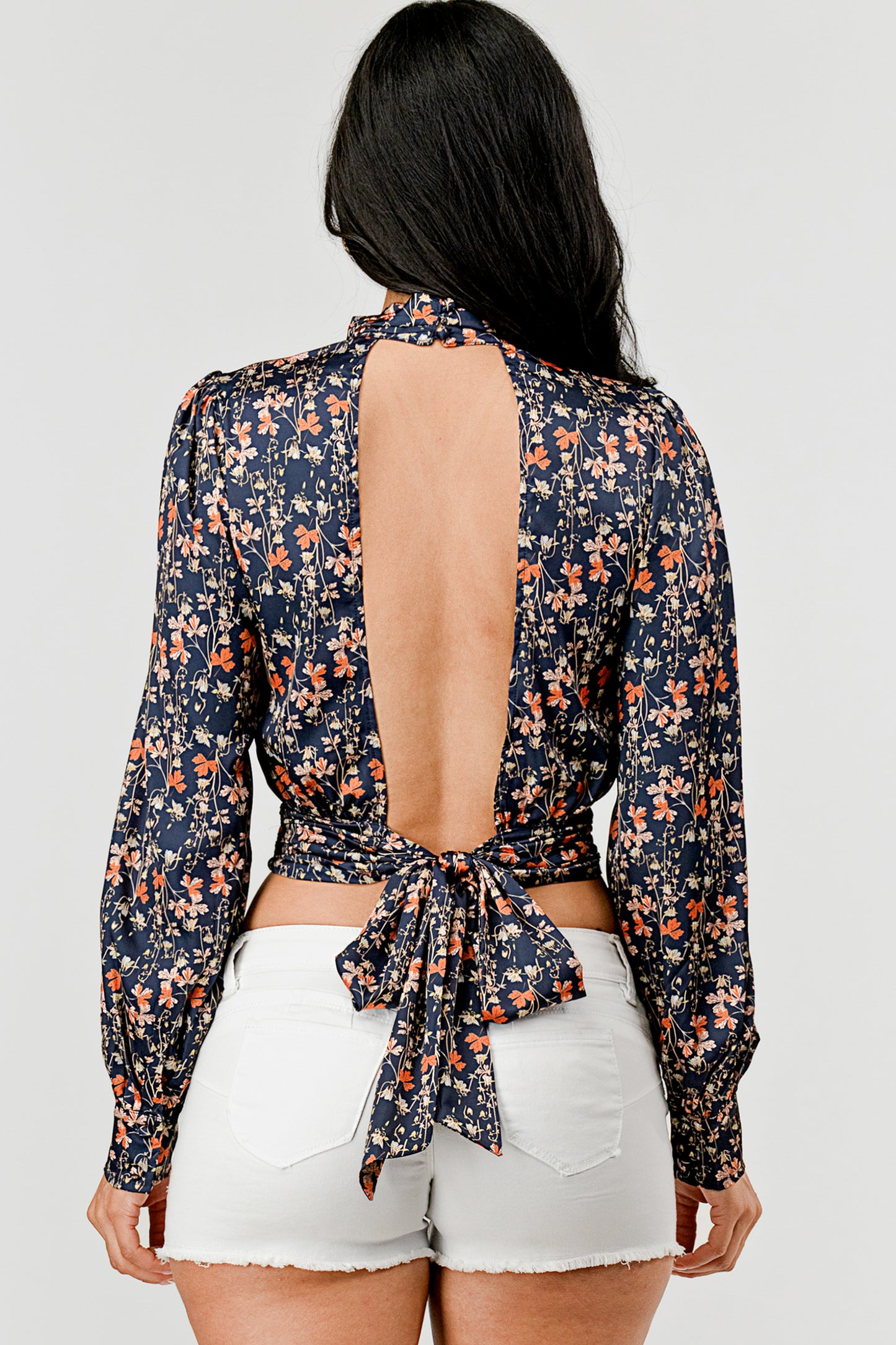 MOCK NECK FLORAL TIE BACK BLOUSE