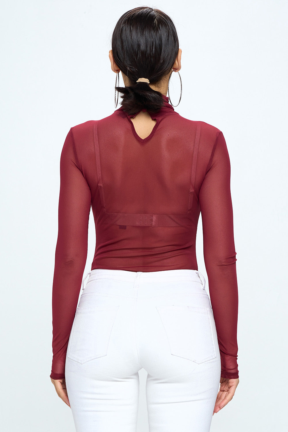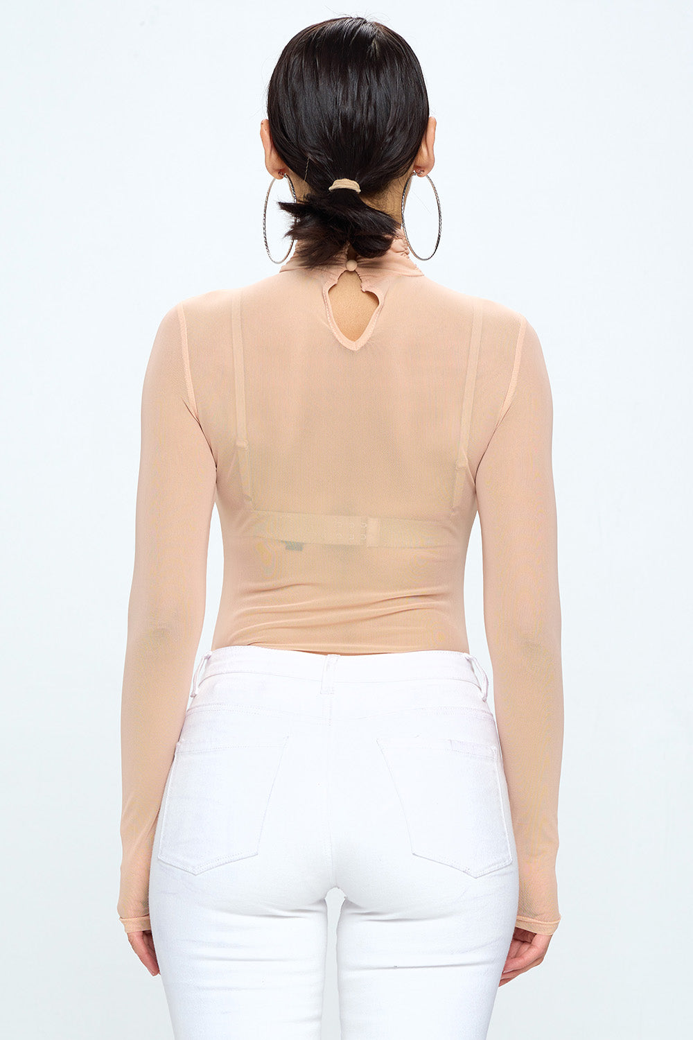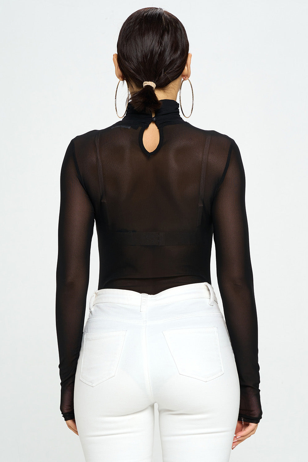 MOCK NECK LONG SLEEVE MESH BODYSUIT