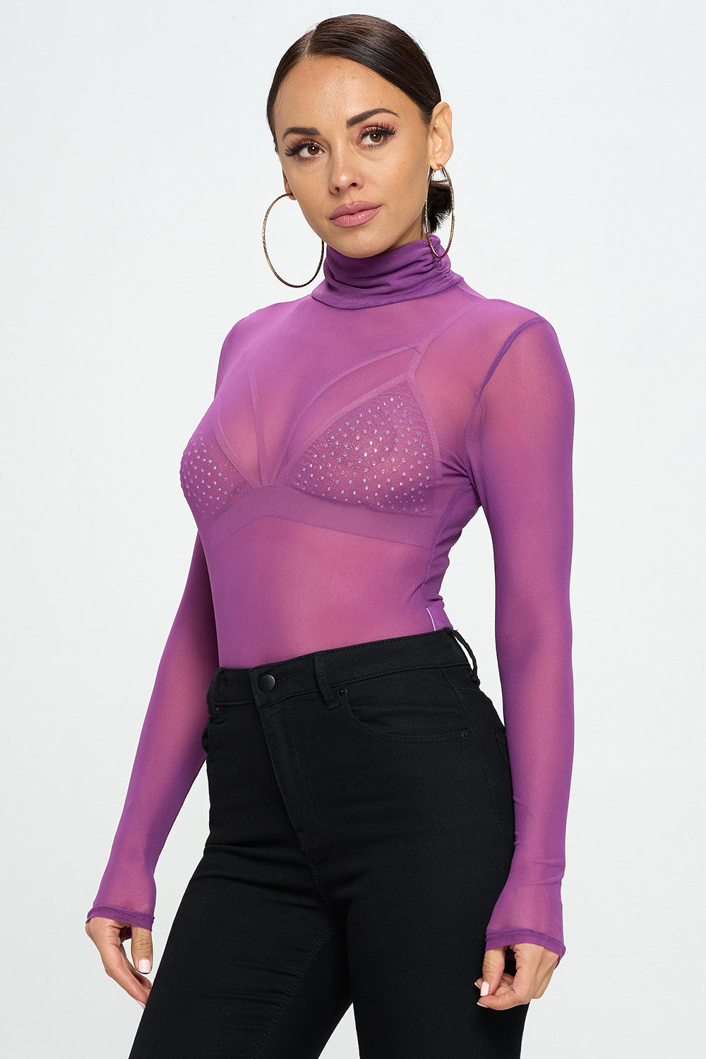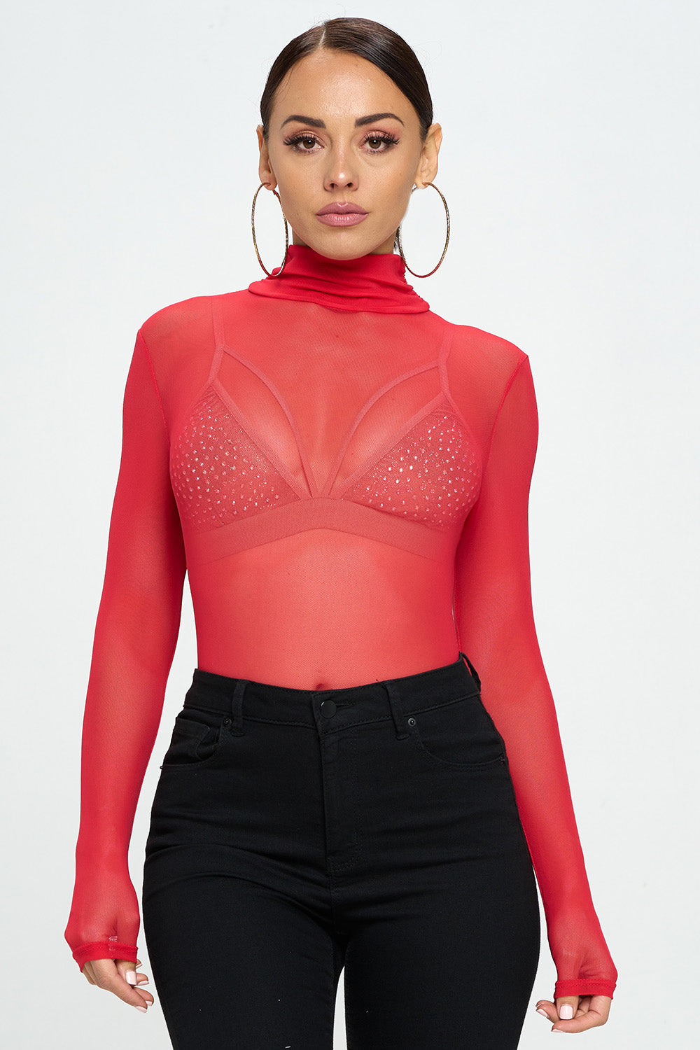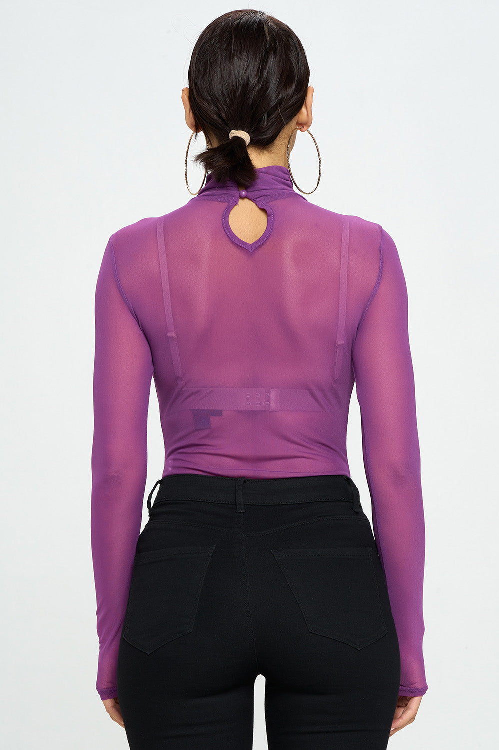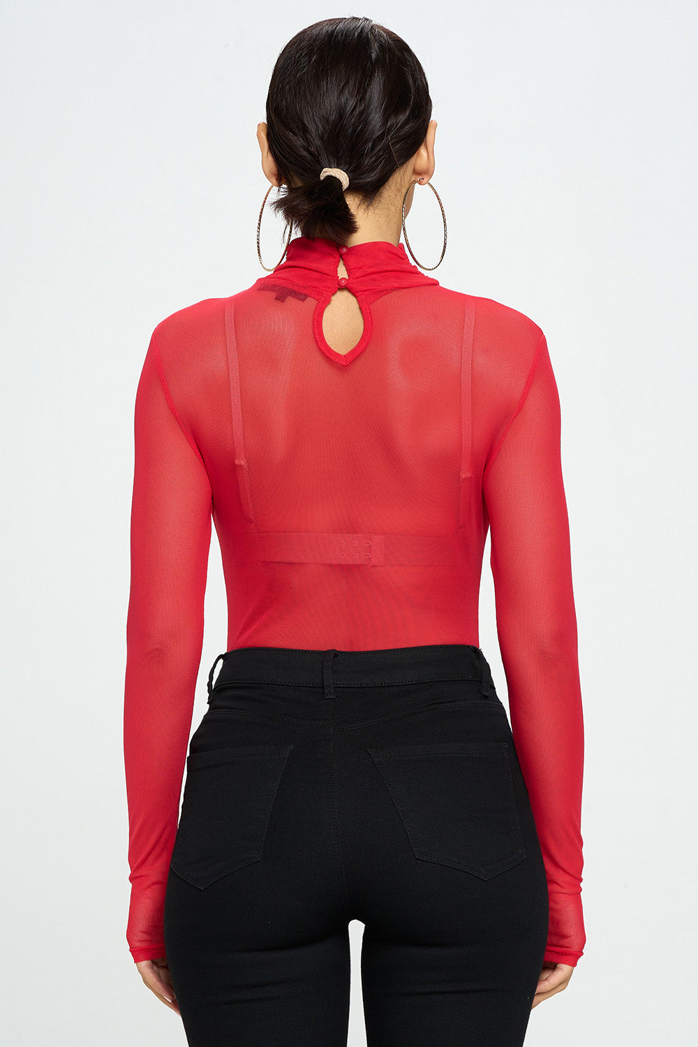MOCK NECK LONG SLEEVE MESH BODYSUIT