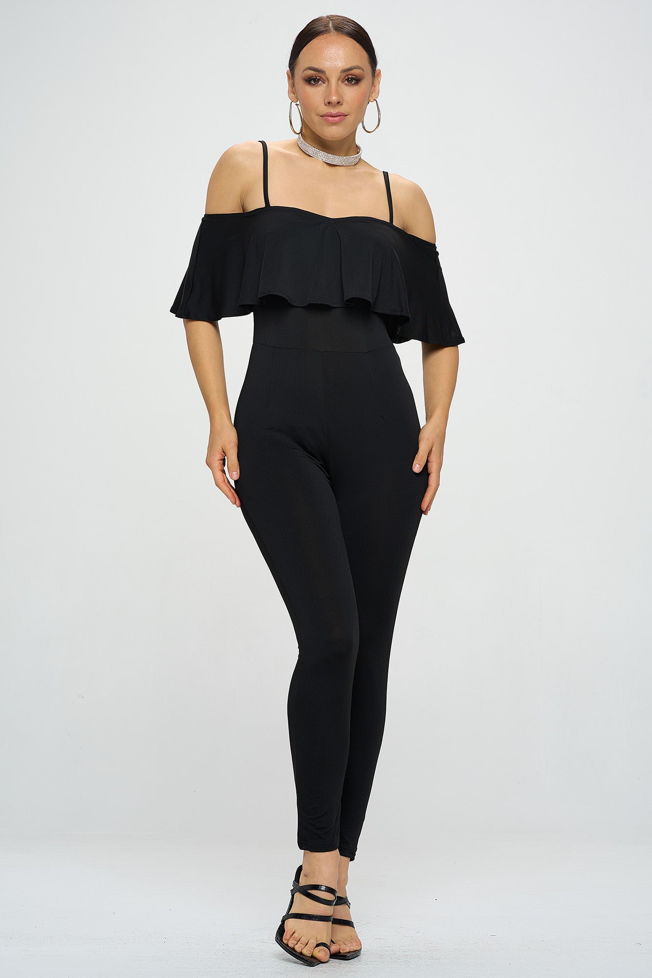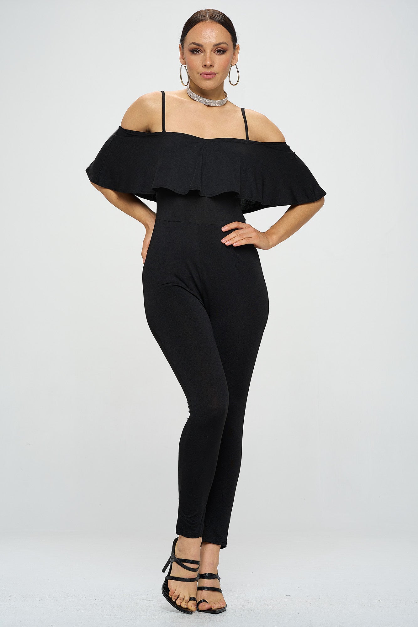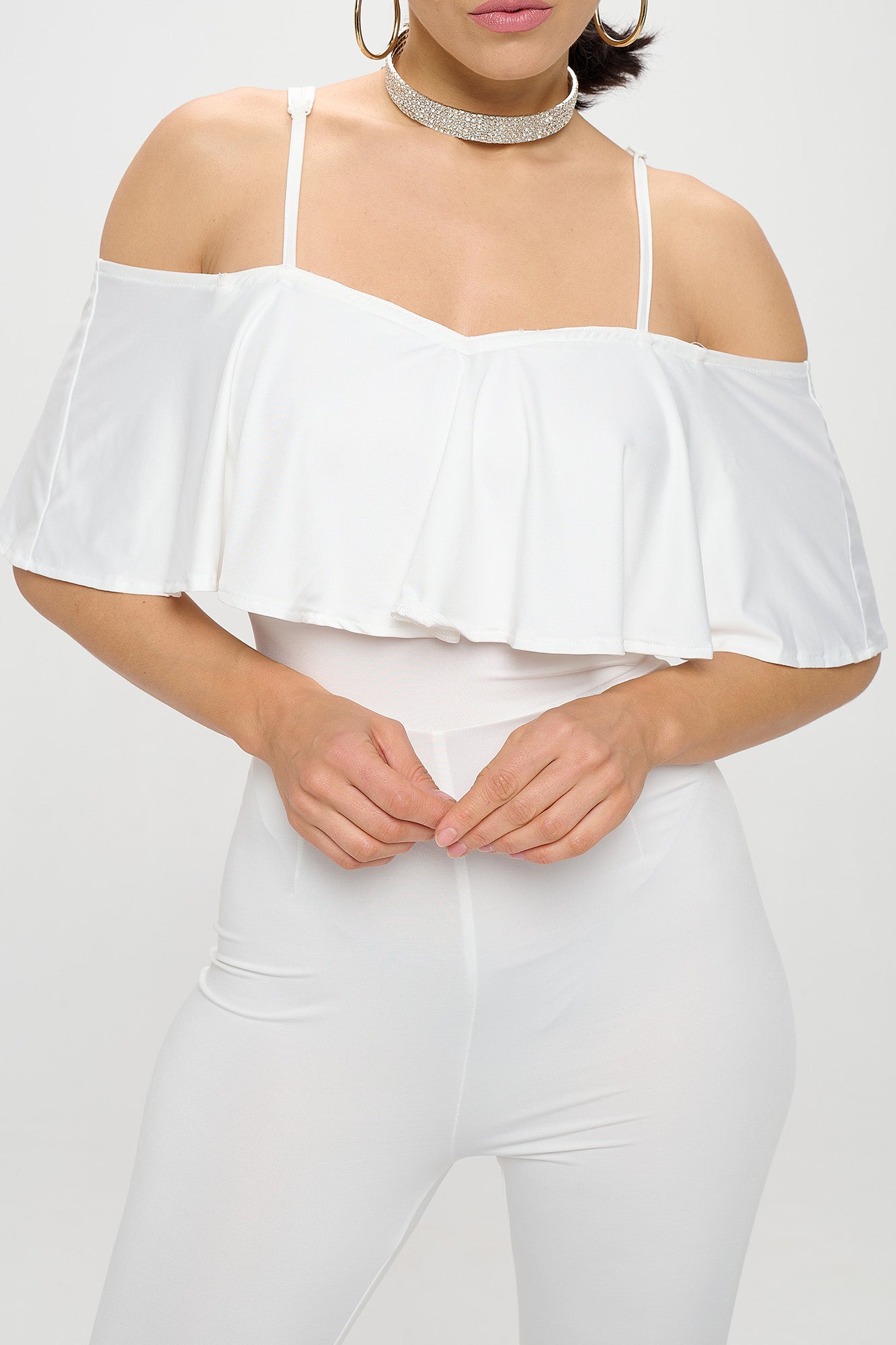 OFF SHOULDER FRILL JUMPSUIT