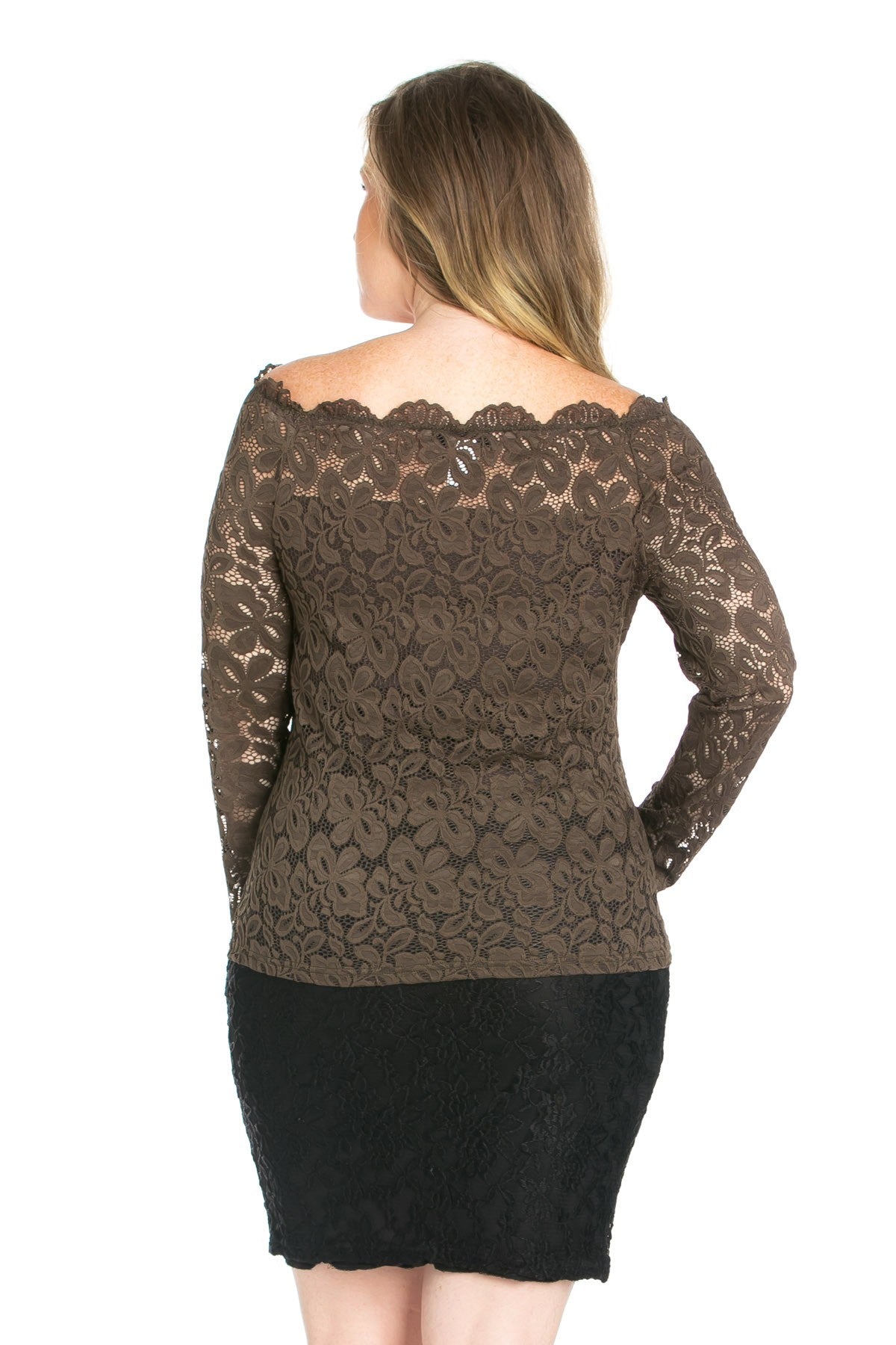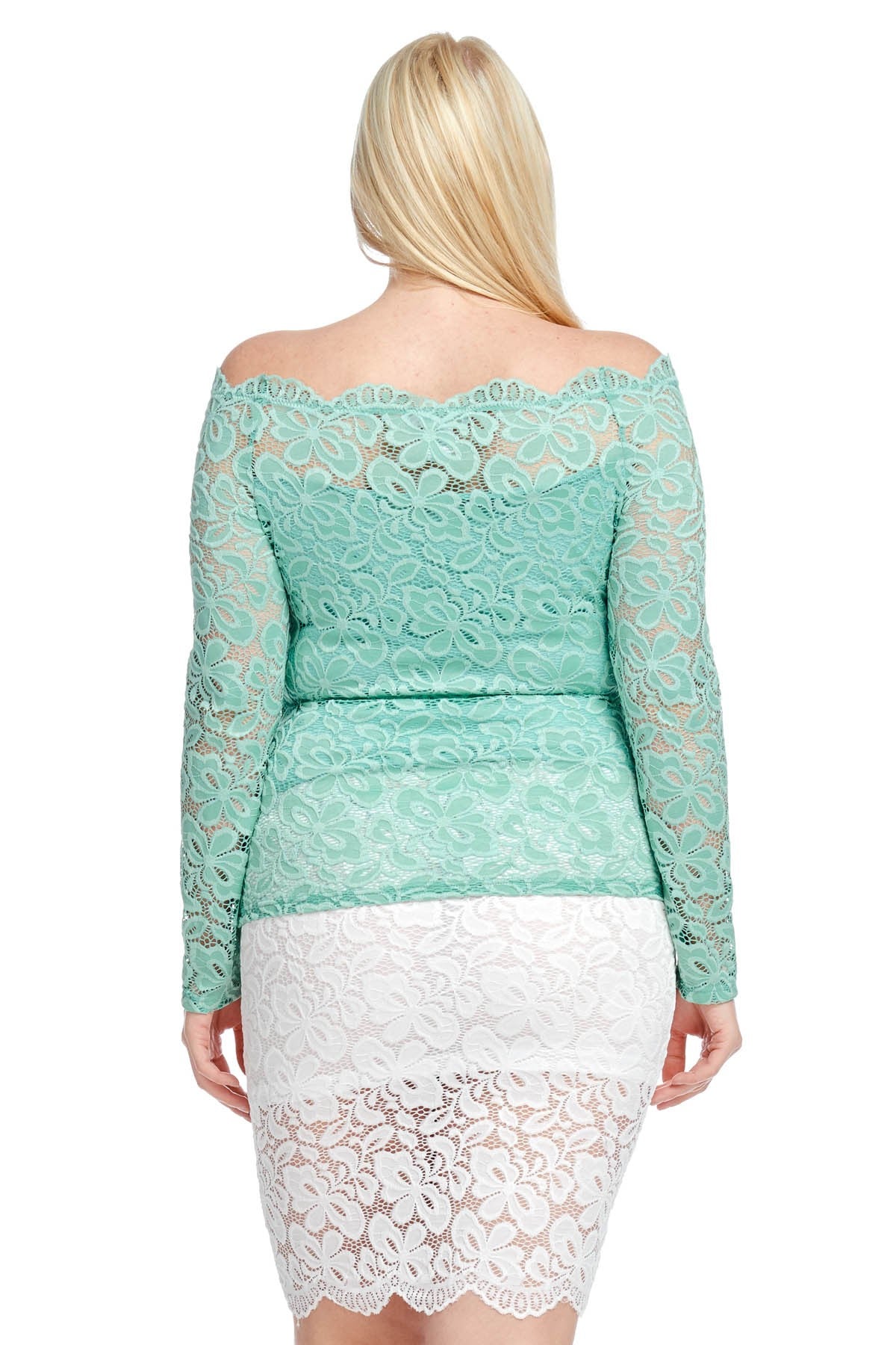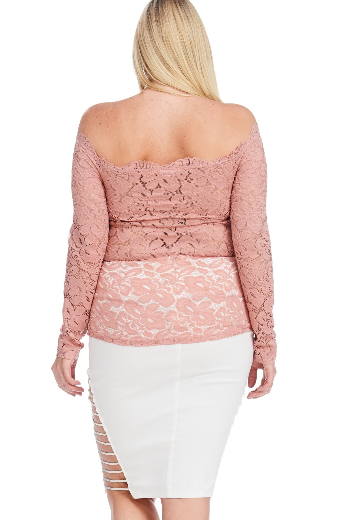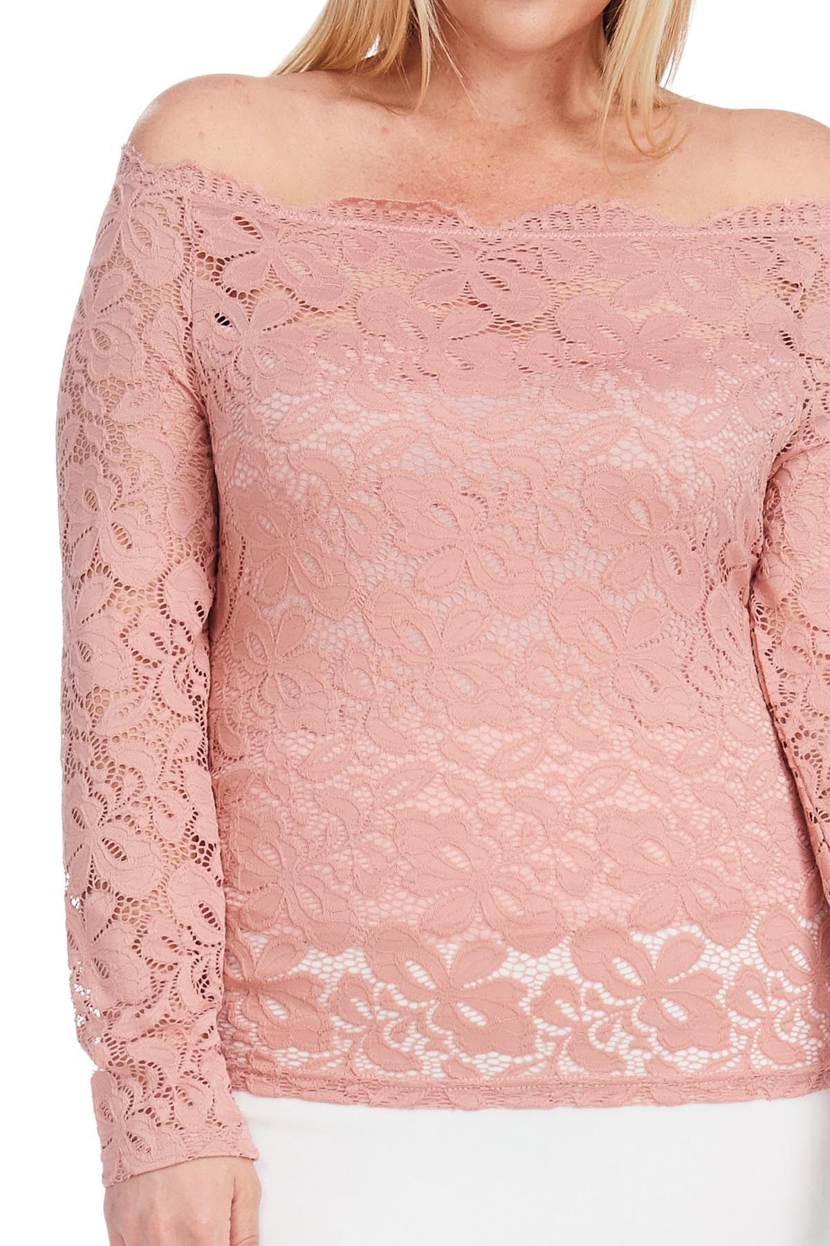 OFF SHOULDER LACE LONG SLEEVE TOP PLUS