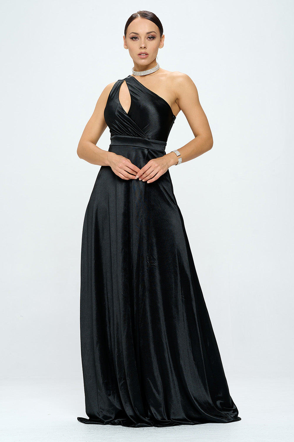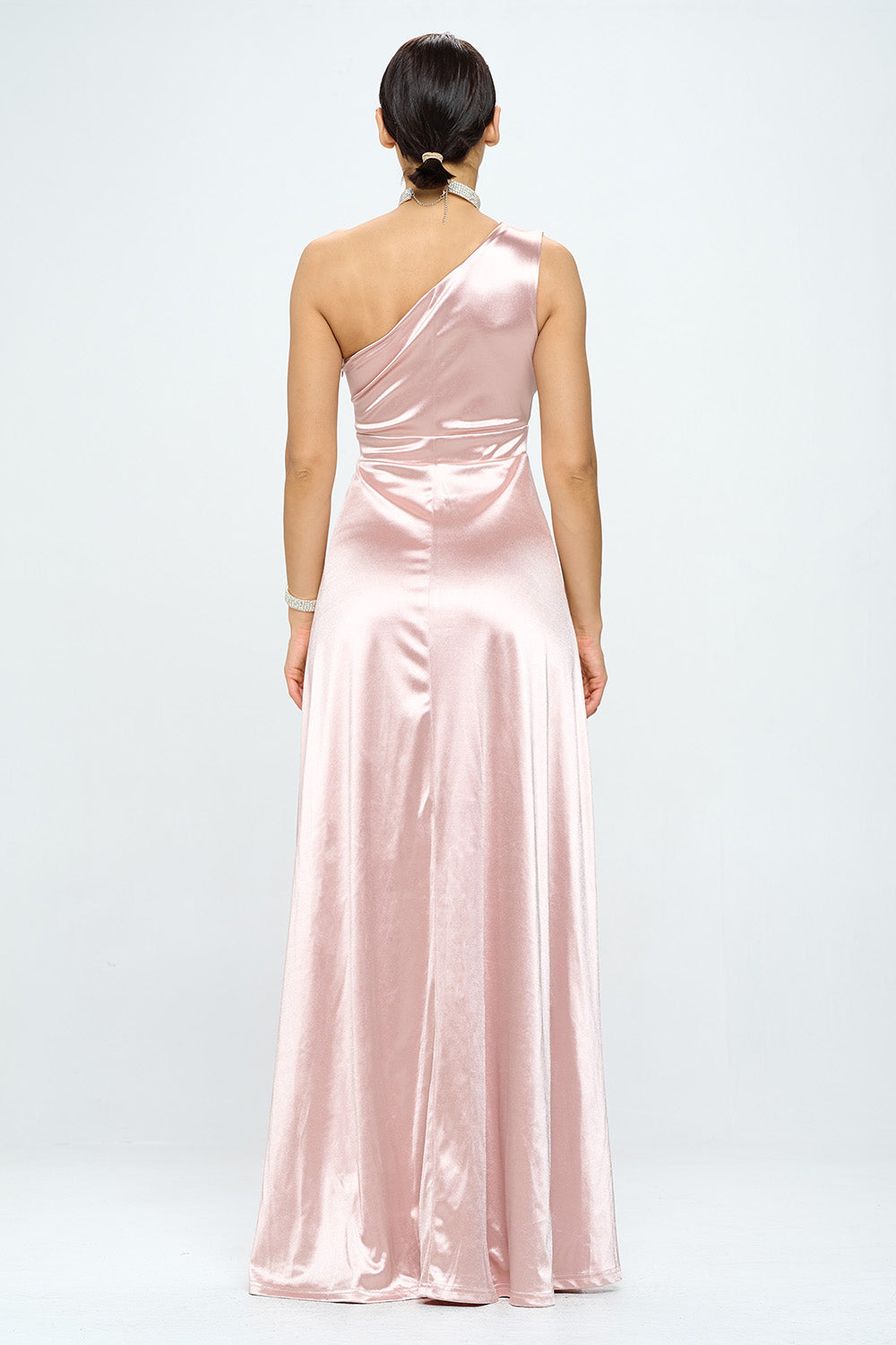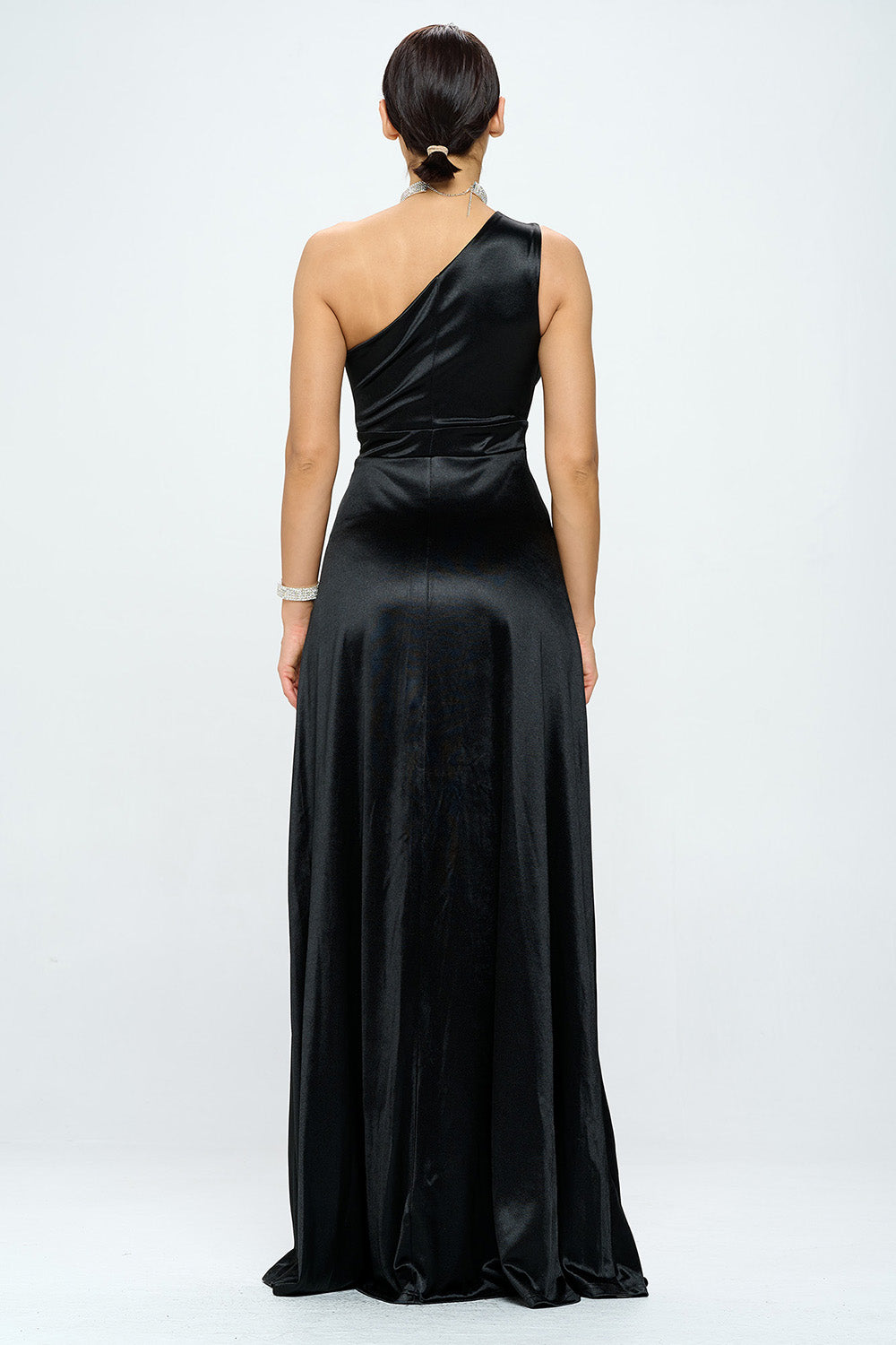 ONE SHOULDER FLOOR LENGTH SATIN MAXI DRESS
