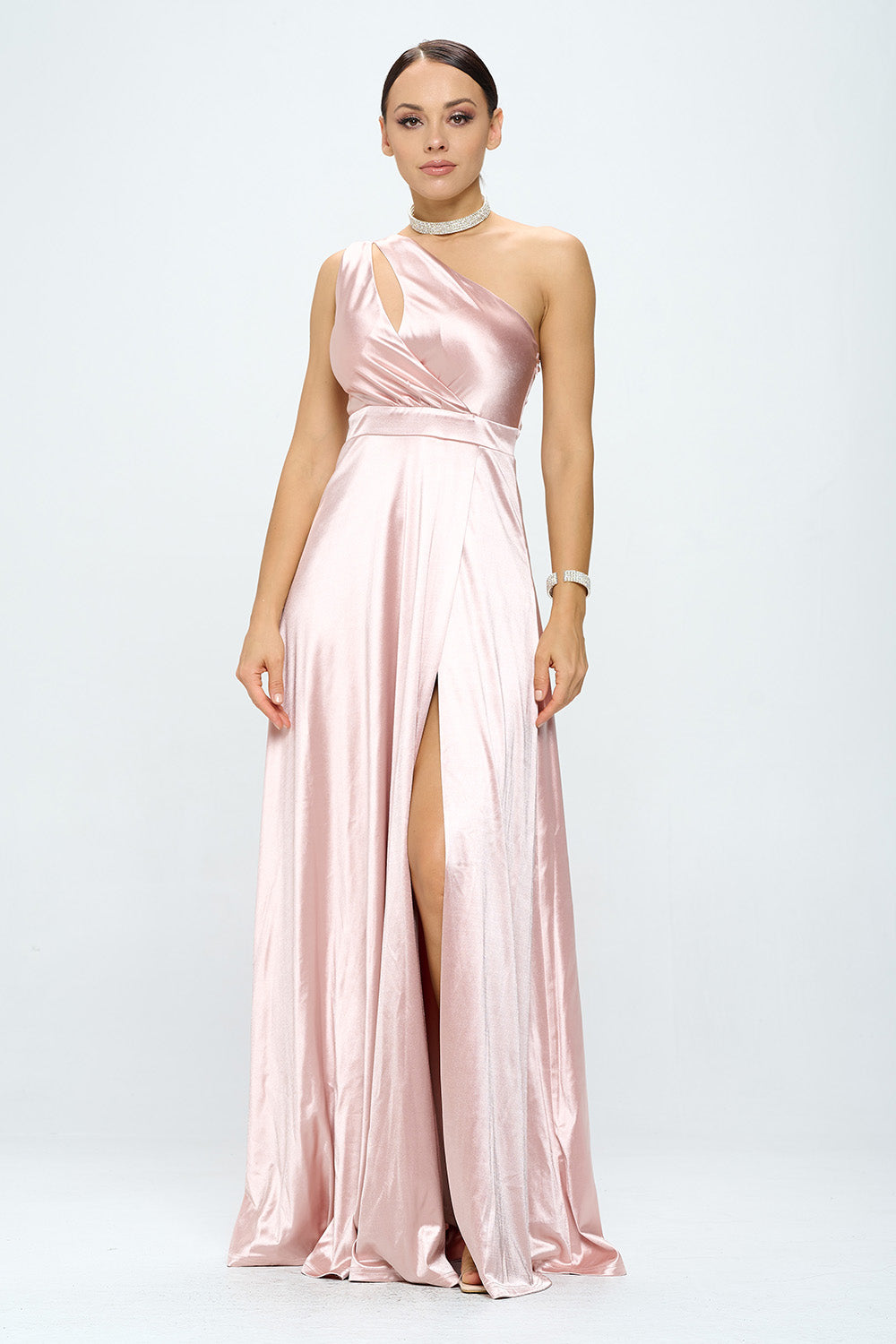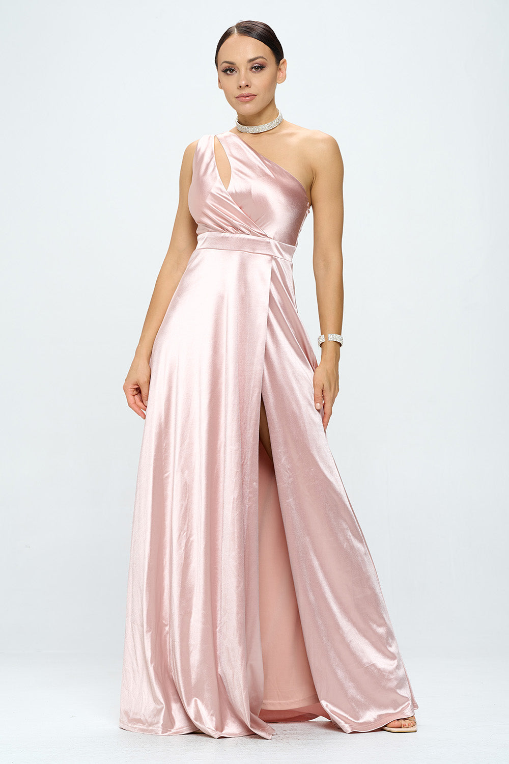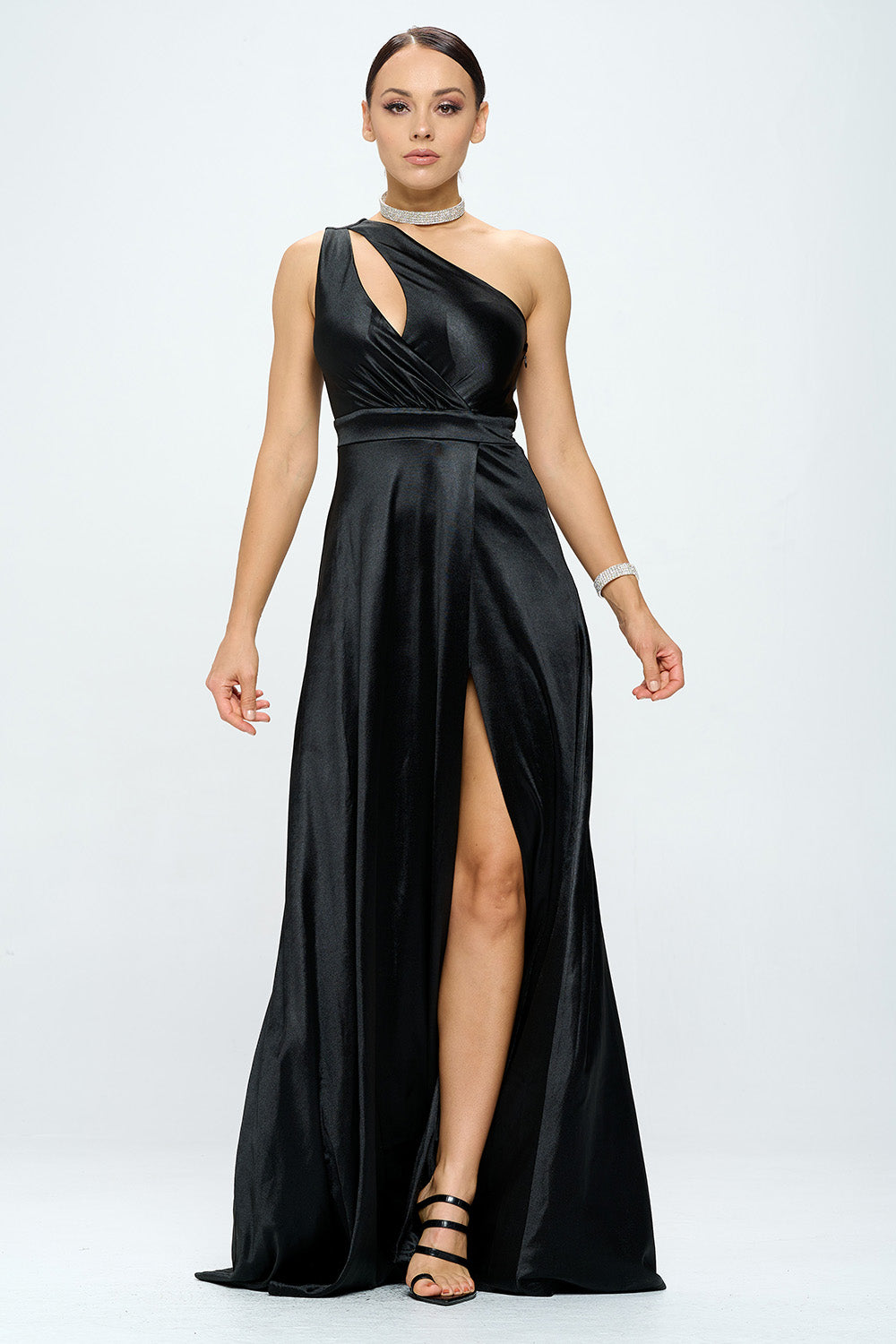 ONE SHOULDER FLOOR LENGTH SATIN MAXI DRESS