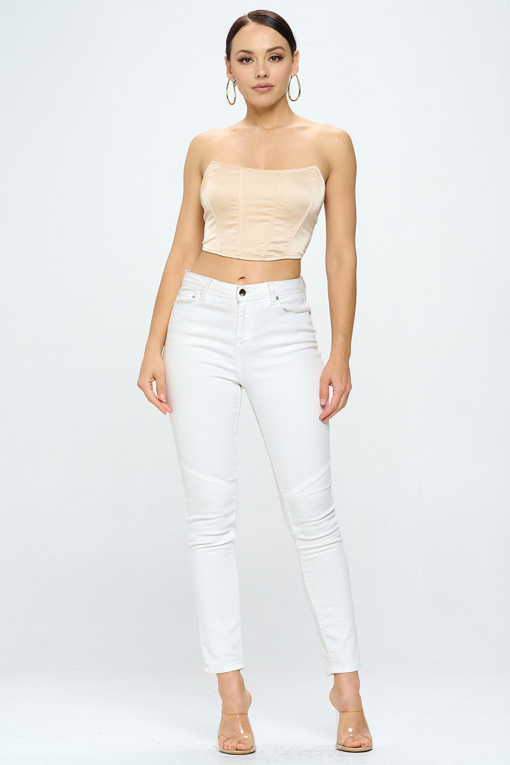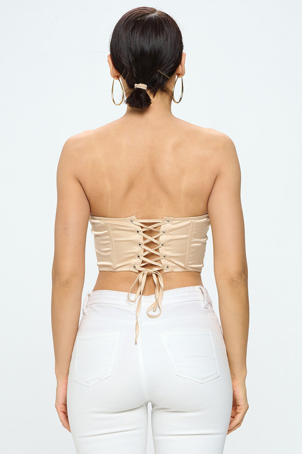 LACE-UP BACK SOLID STRAPLESS SATIN CORSET TOP