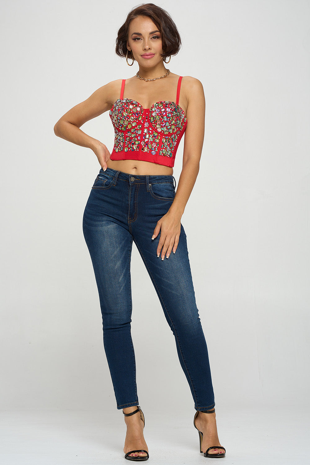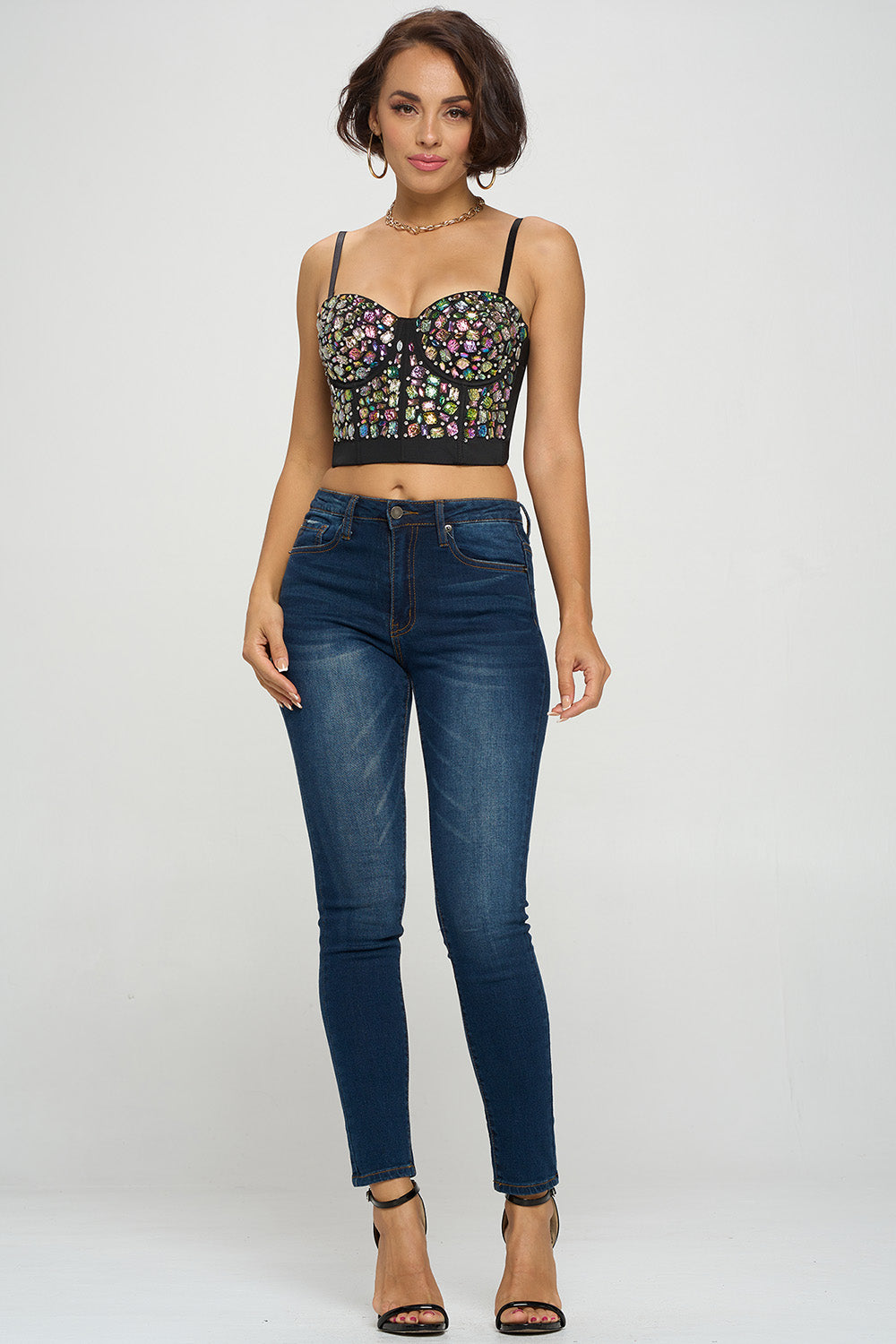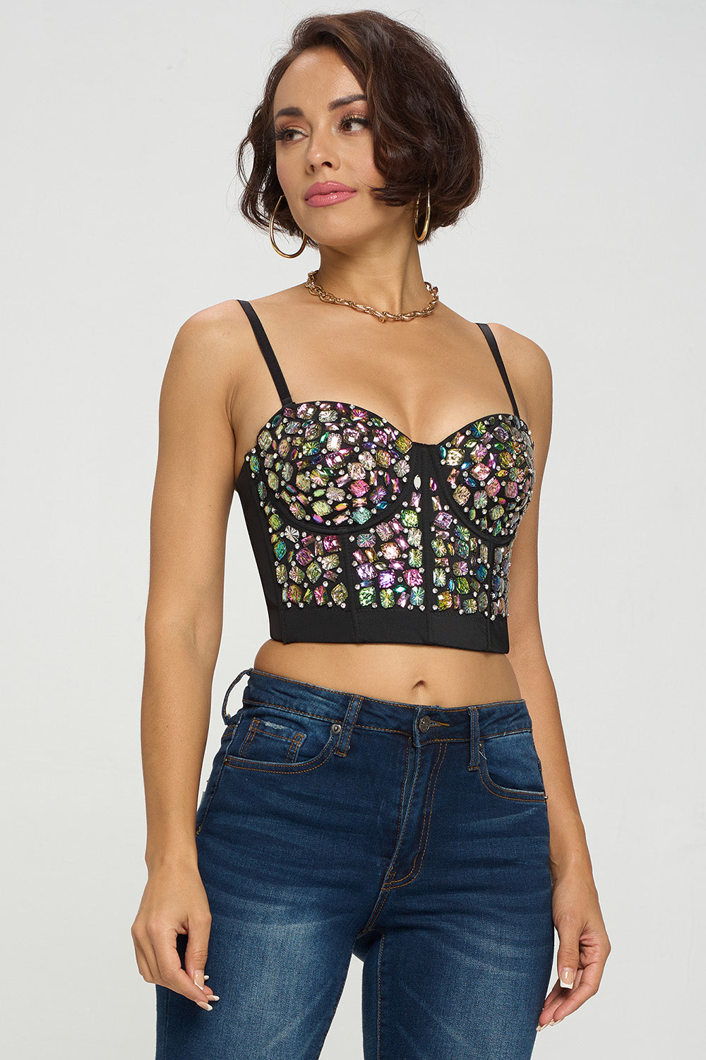 AB RHINESTONE EMBELLISHED BUSTIER CROP TOP_D6926