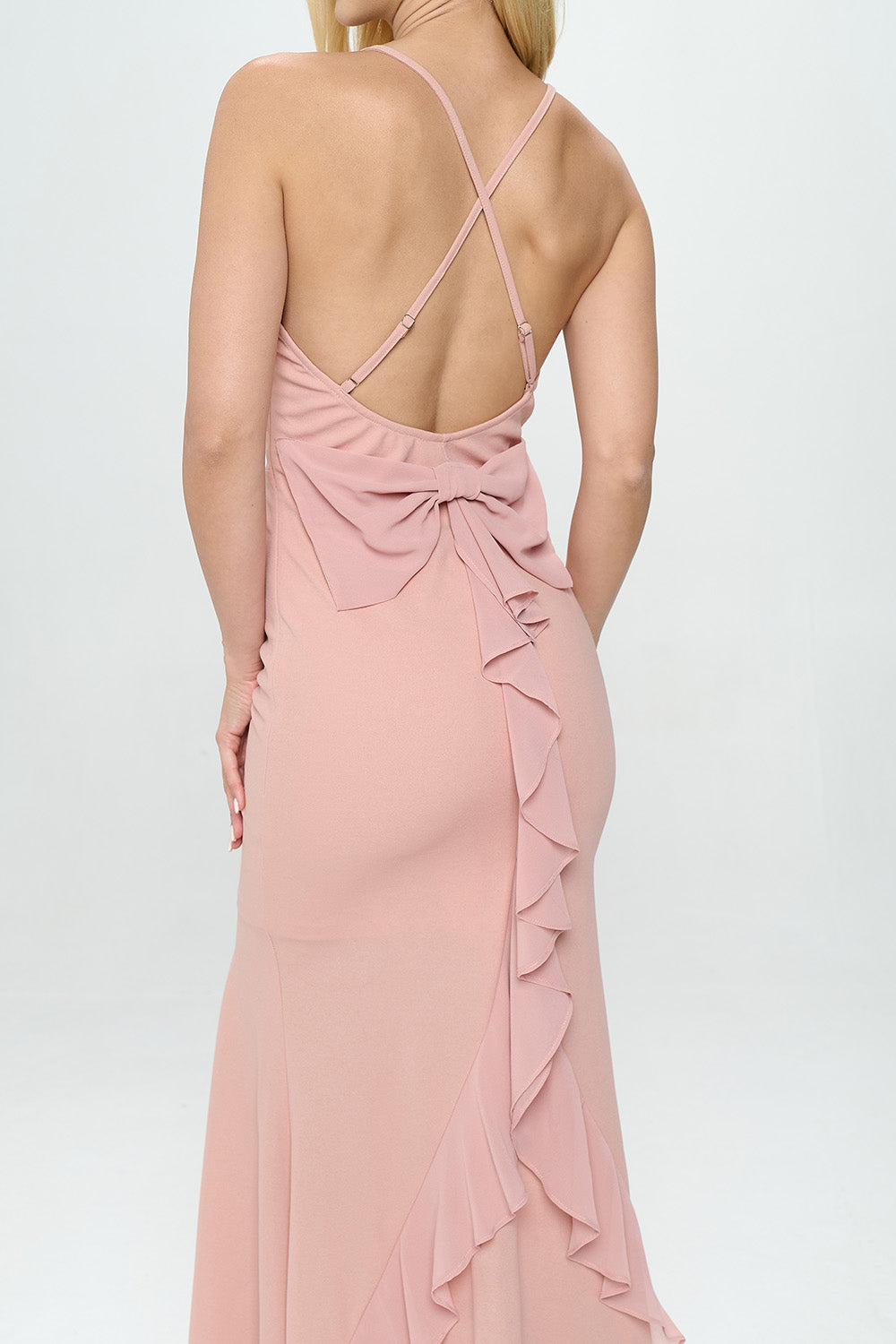 RUFFLE BOW MAXI DRESS GOWN