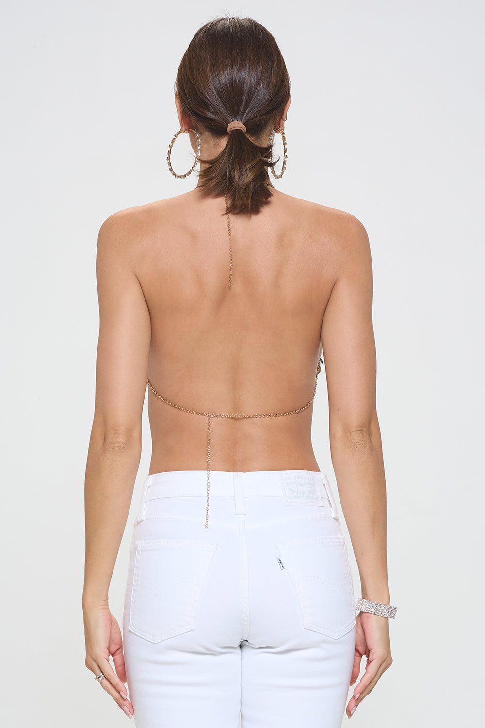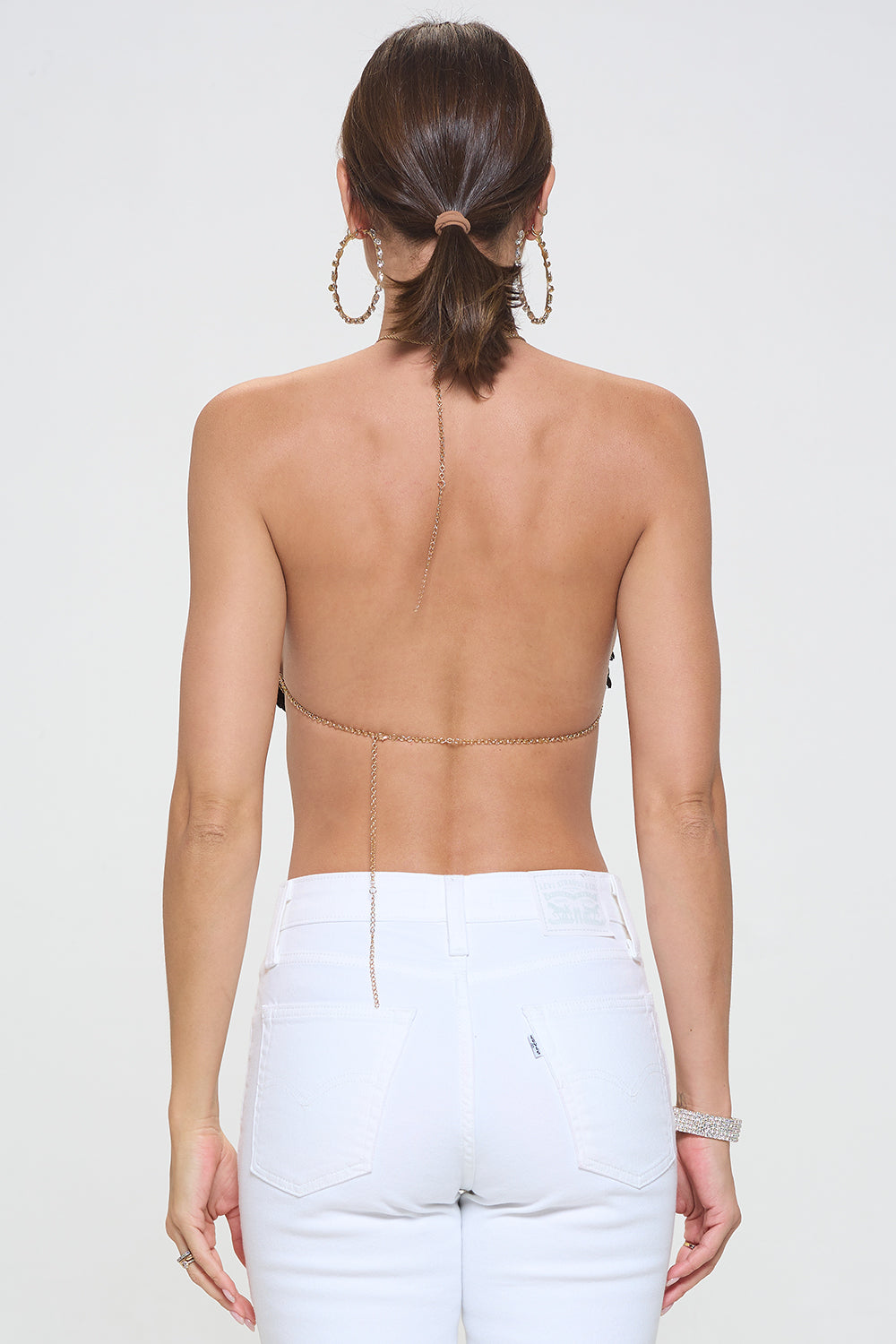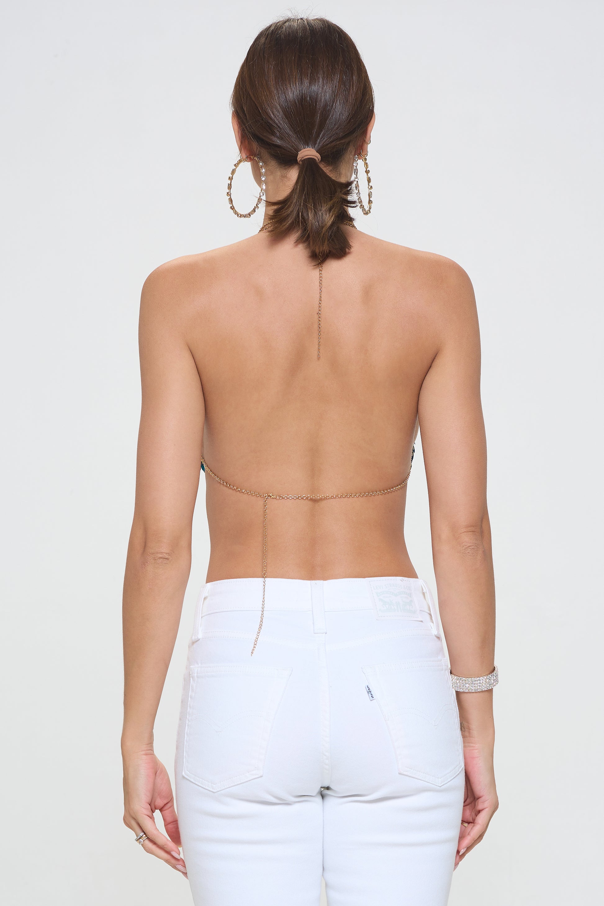 SEQUIN METALLIC BIKINI CHAIN HALTER TOP
