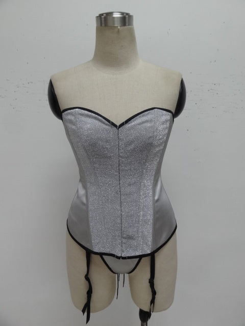 SHINNY LUREX FRONT PANEL CORSET W/ THONG