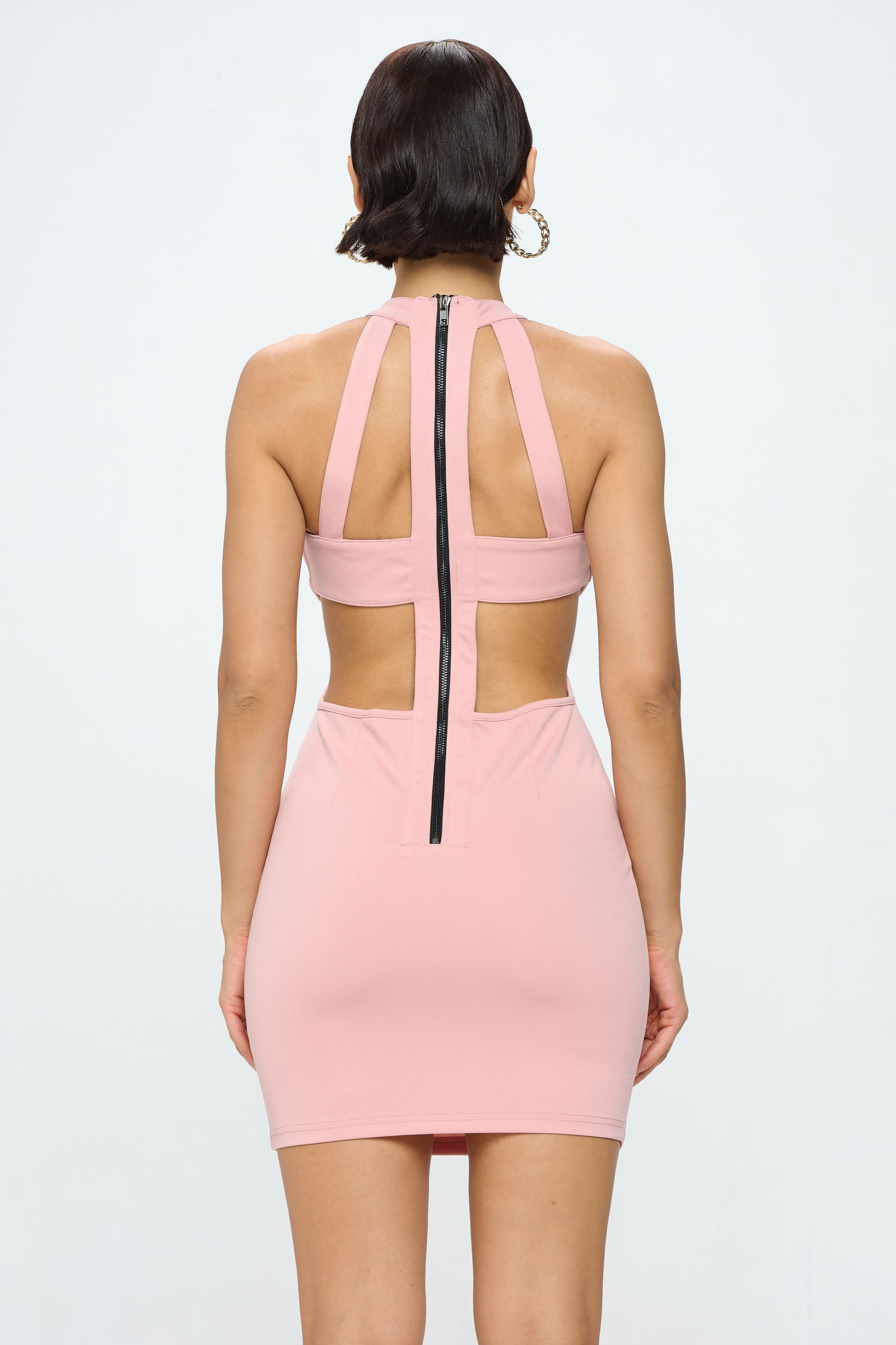 SIDE-CUT BACK PATTERN ZIP-UP DRESS