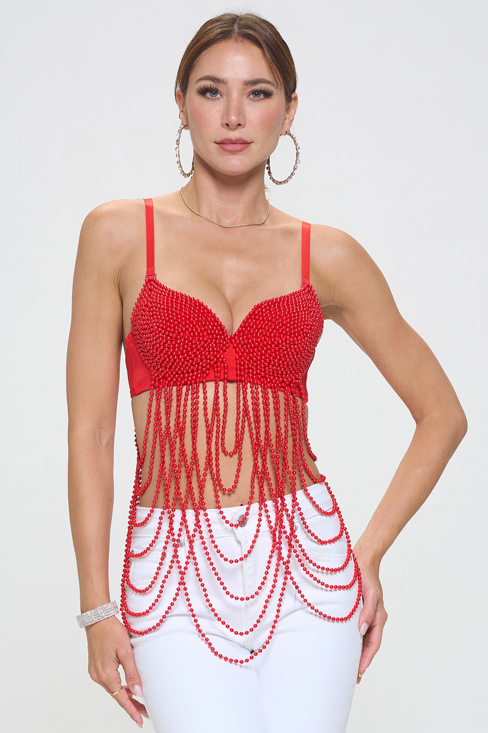 SOLID PEARL BEADING CHAIN LAYERED BRA TOP_D7270