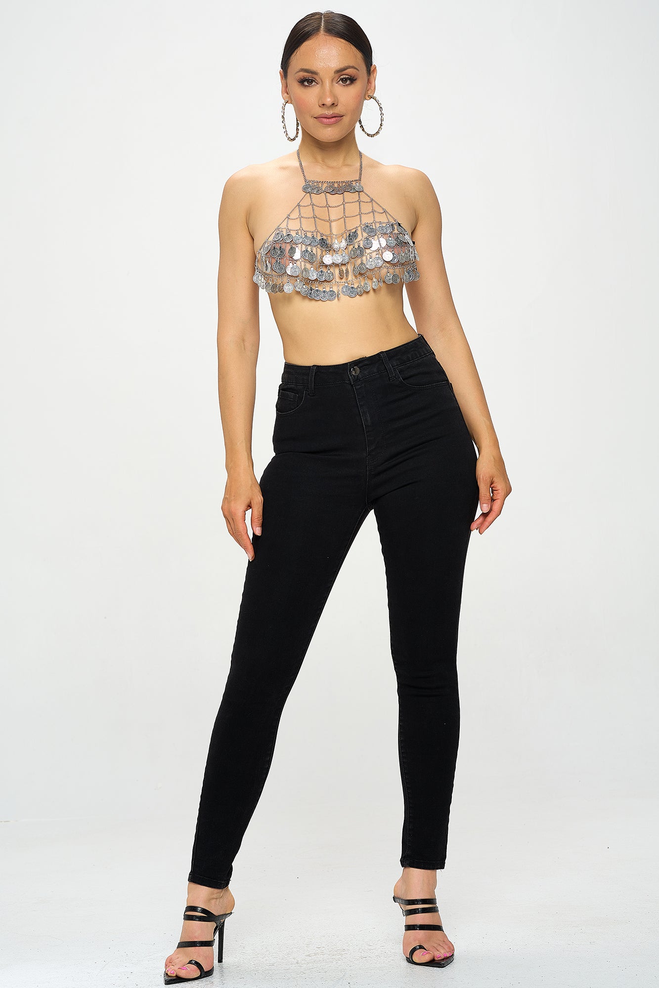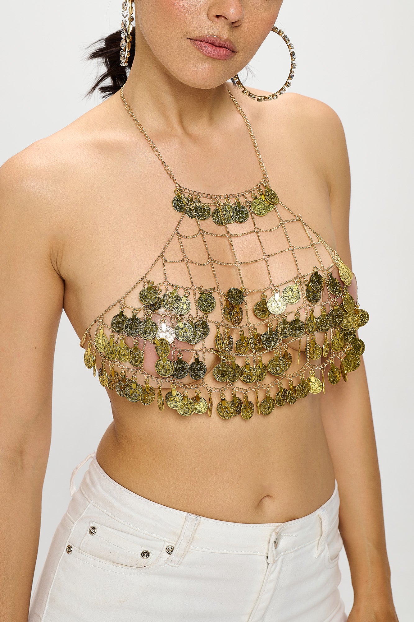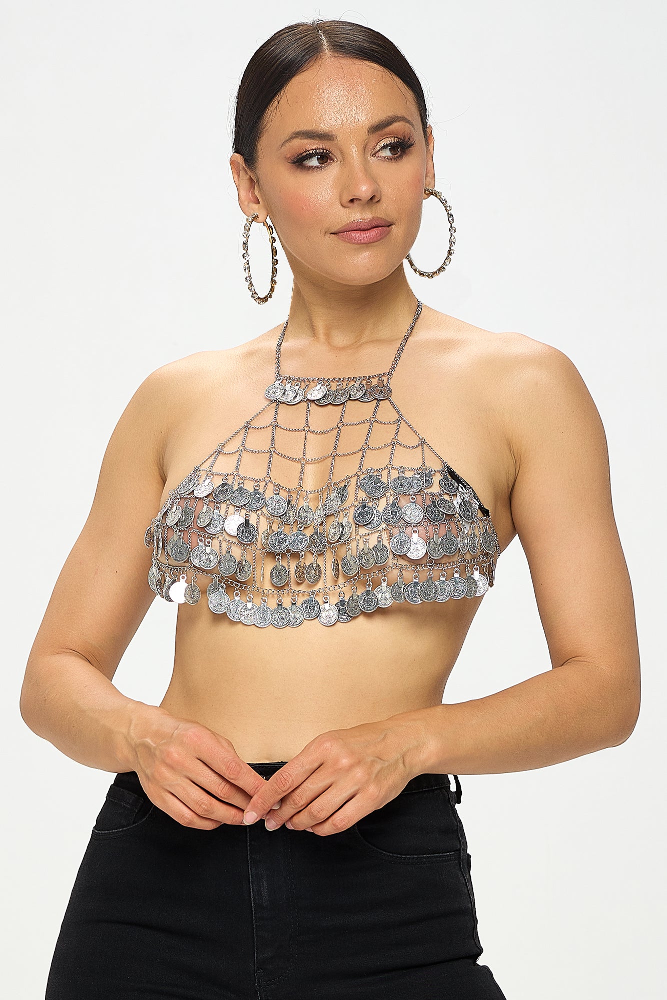 TASSEL COIN HALTER BRA CROP TOP