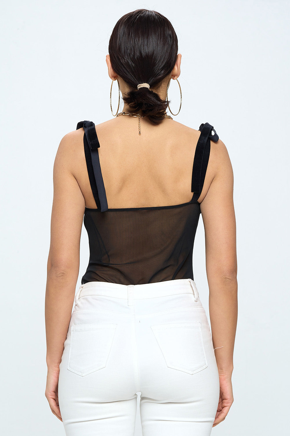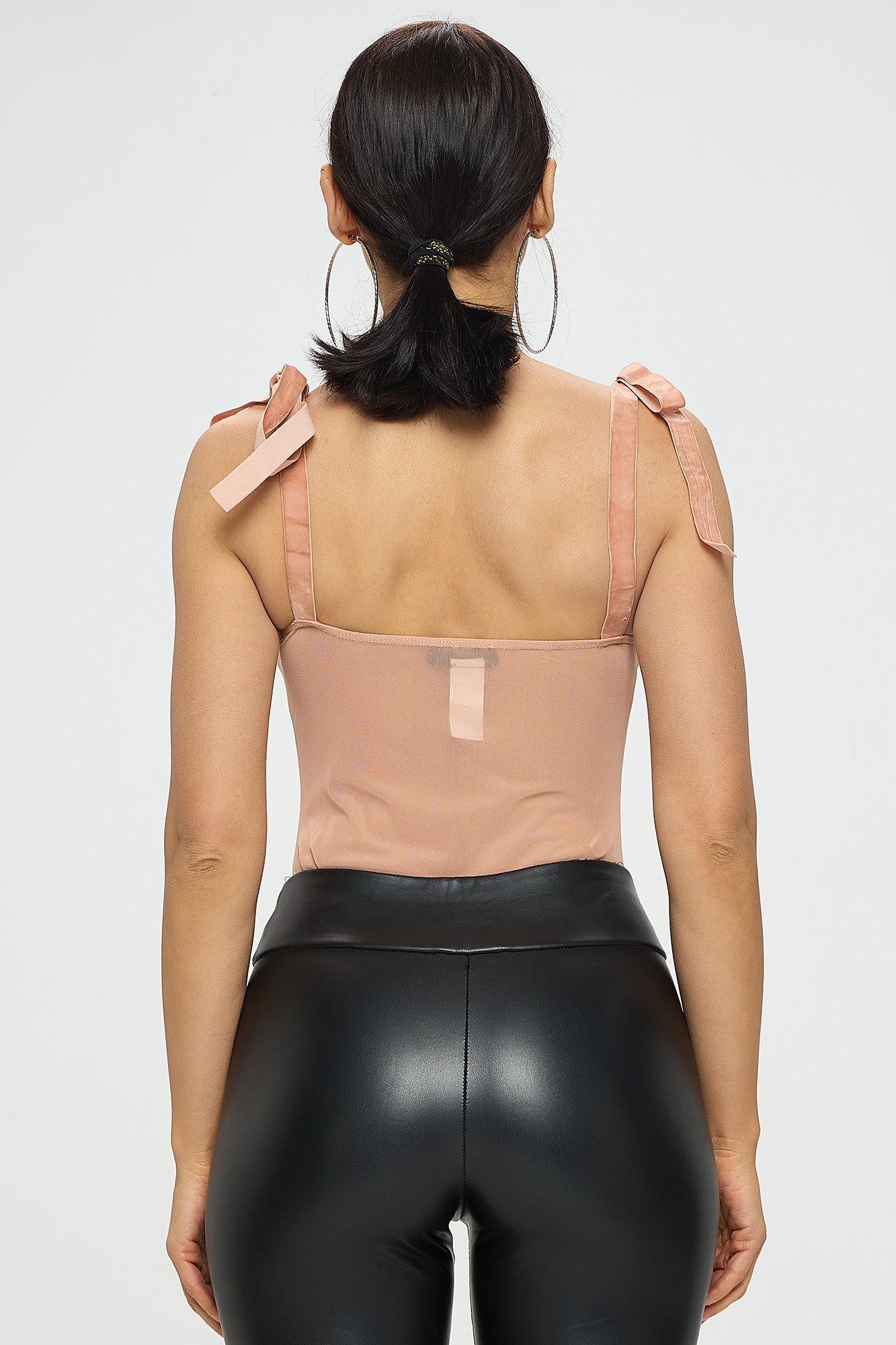TIE SHOULDER RUCHED BRA BODYSUIT