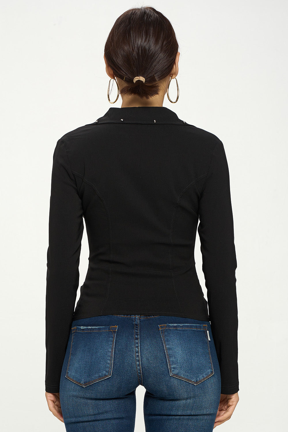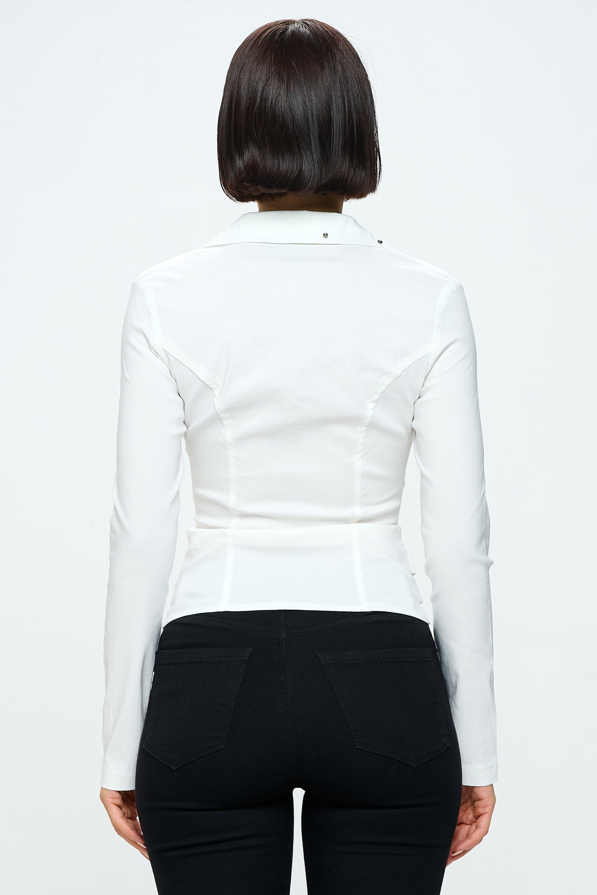 ZIPPER FRONT CLOSURE BUCKLE SIDE DETAILS LONG SLEEVE JACKET