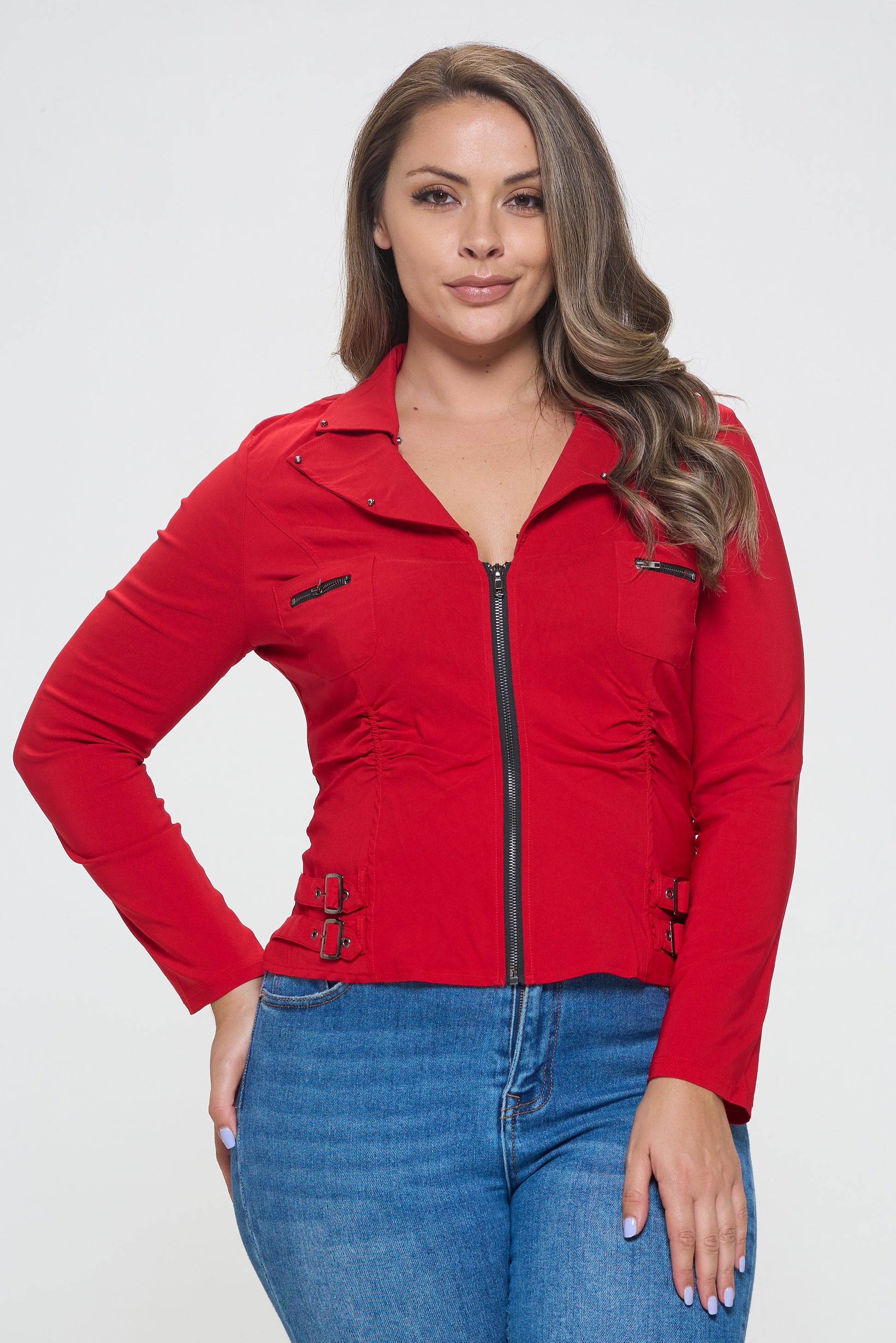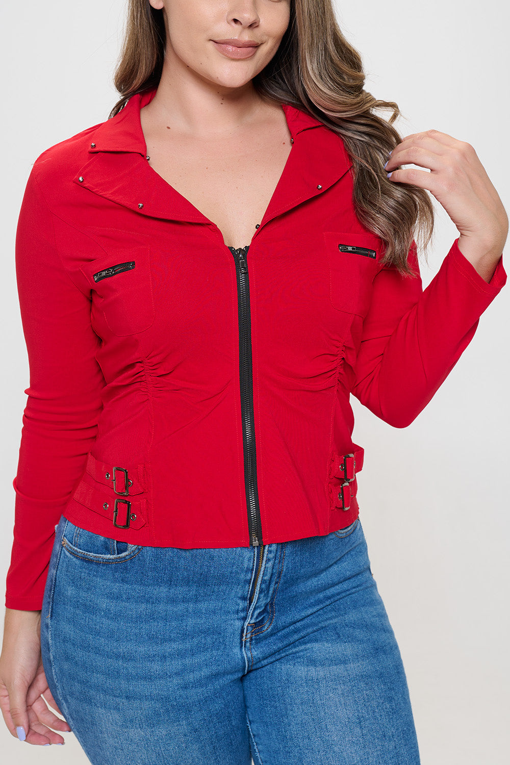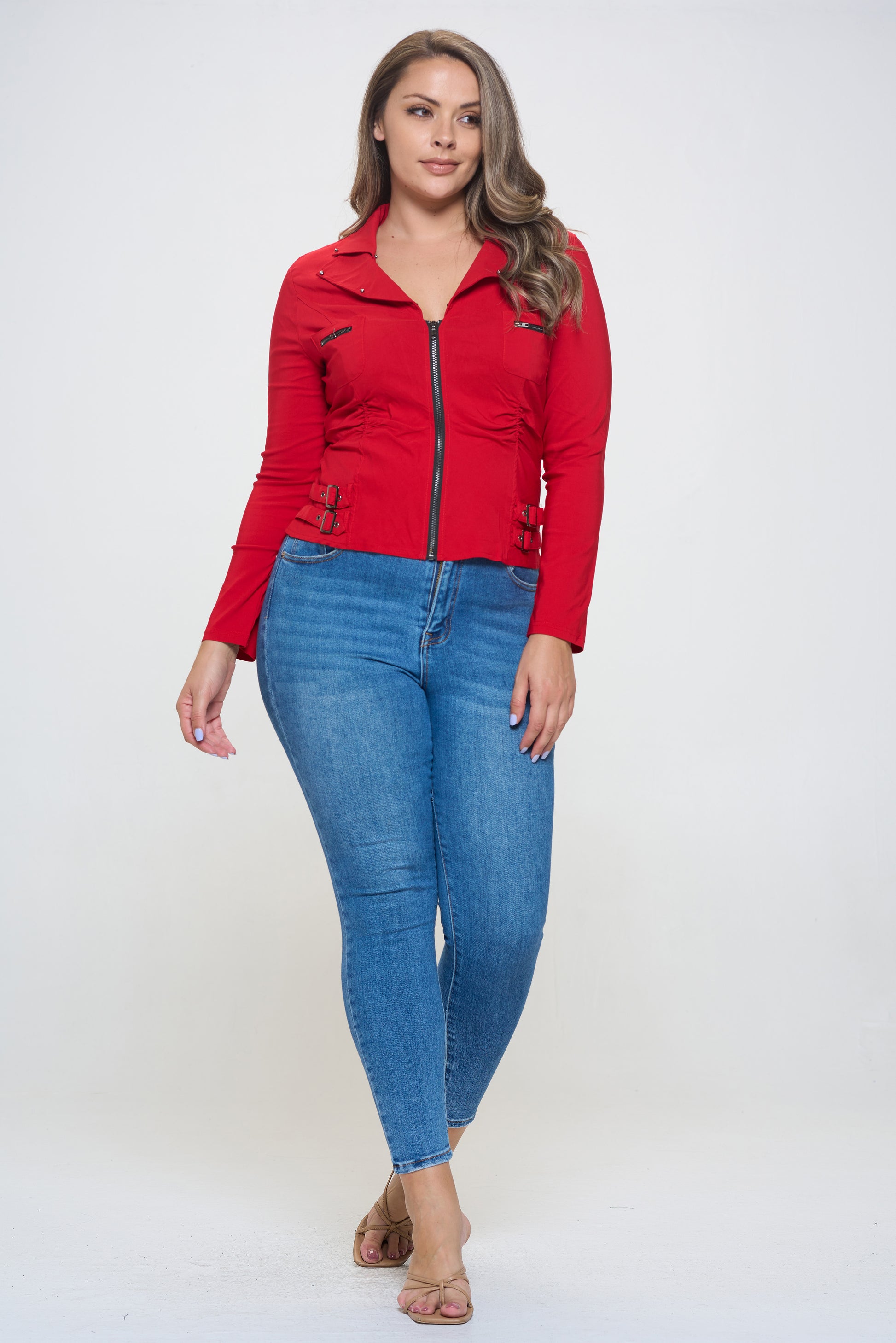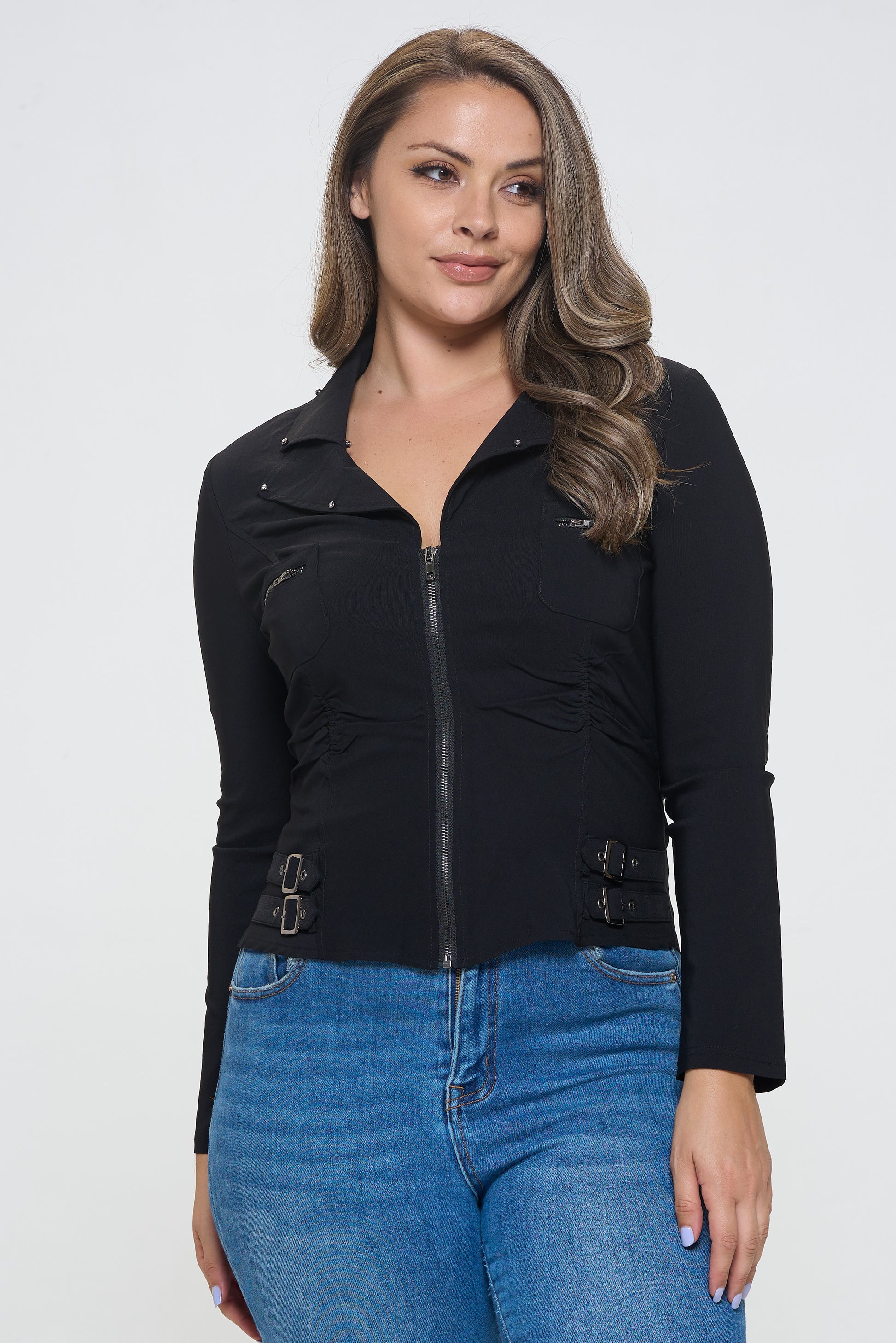 ZIPPER FRONT CLOSURE BUCKLE SIDE DETAILS LONG SLEEVE PLUS JACKET