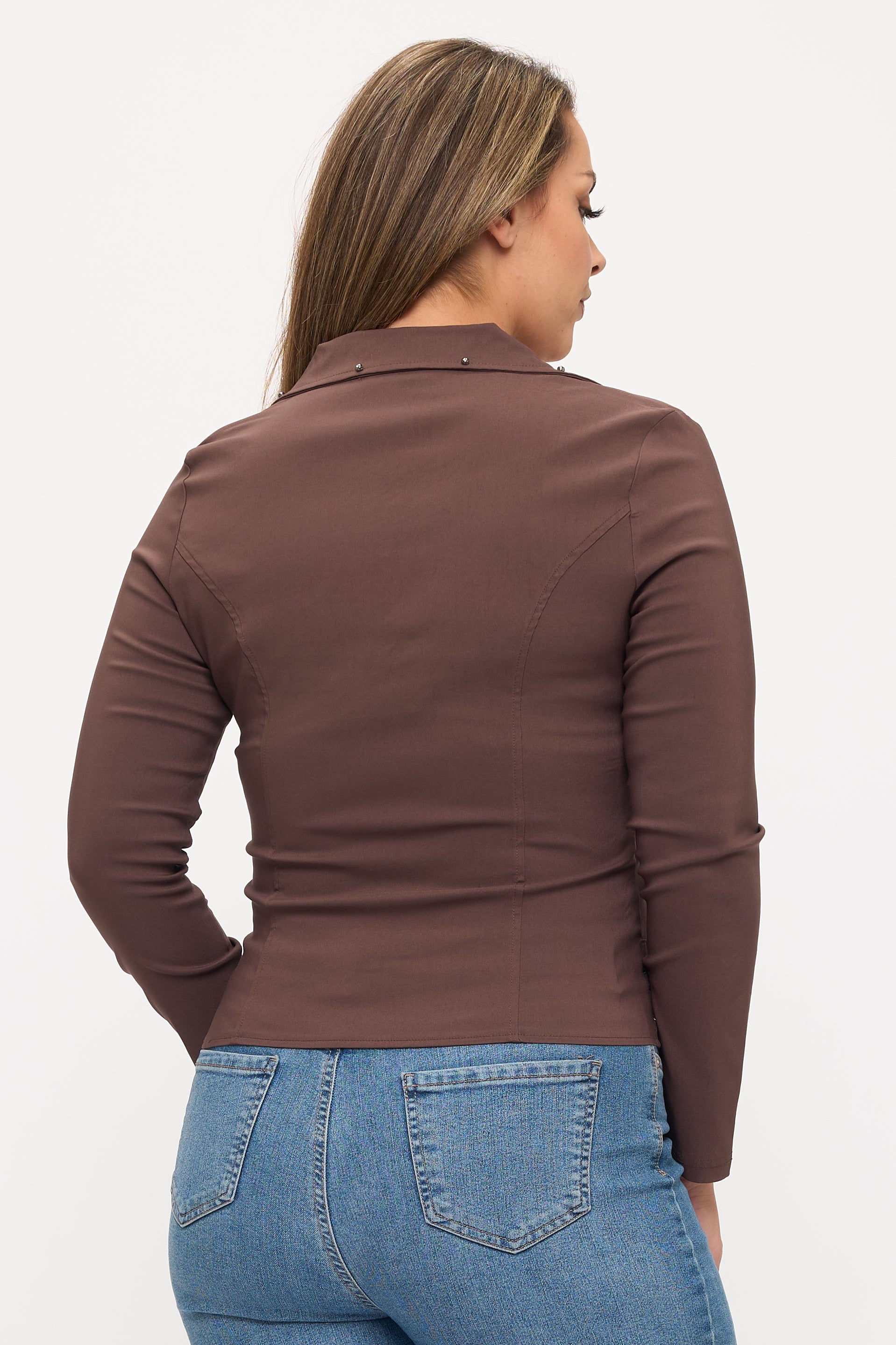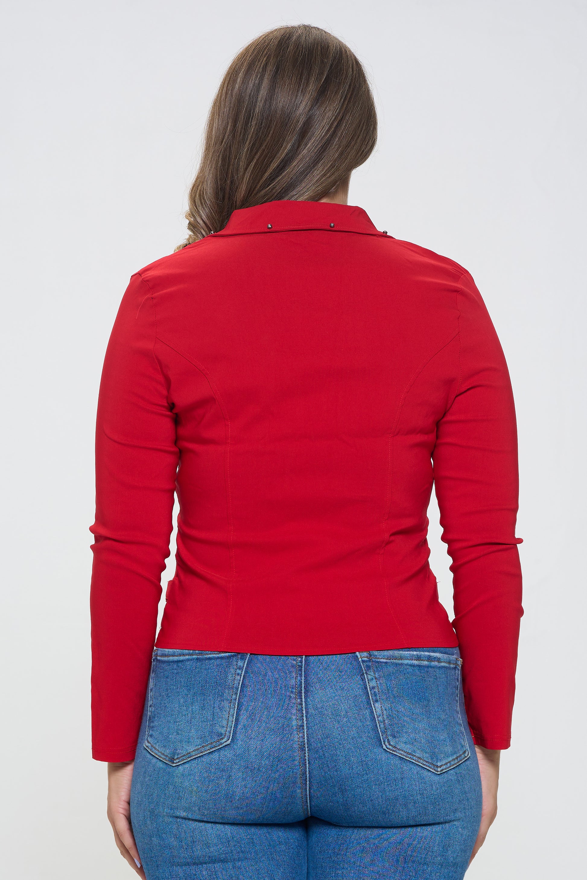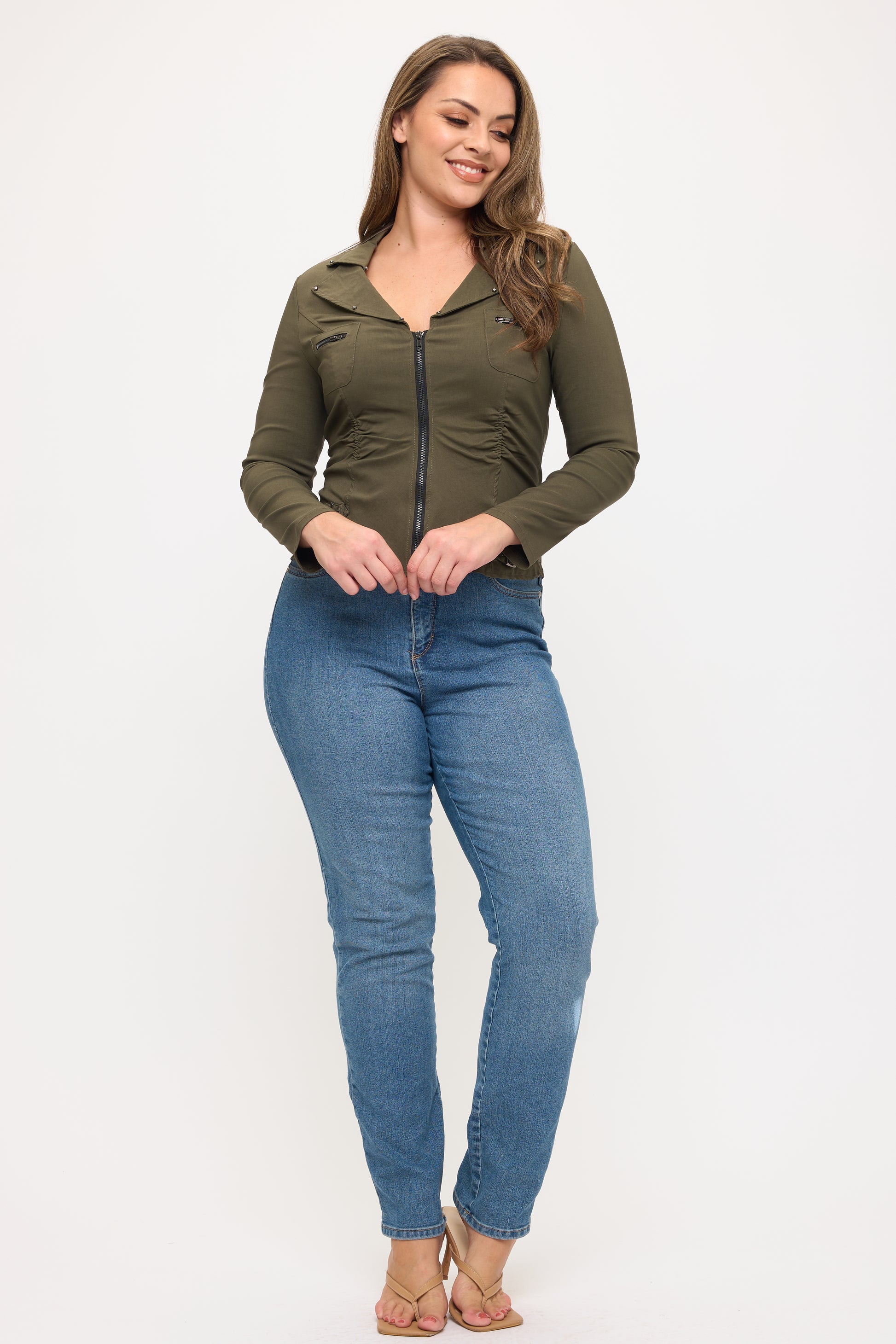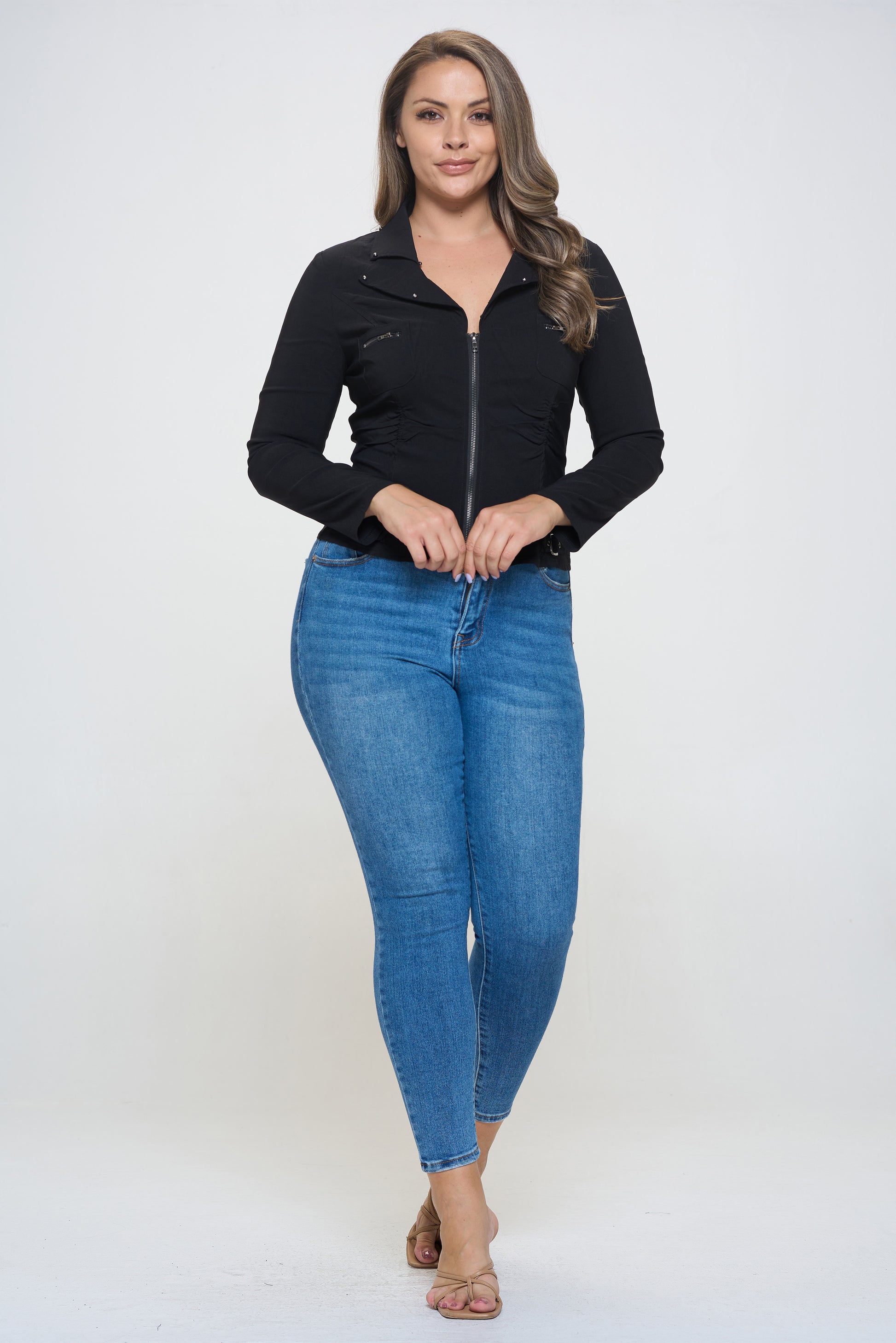 ZIPPER FRONT CLOSURE BUCKLE SIDE DETAILS LONG SLEEVE PLUS JACKET