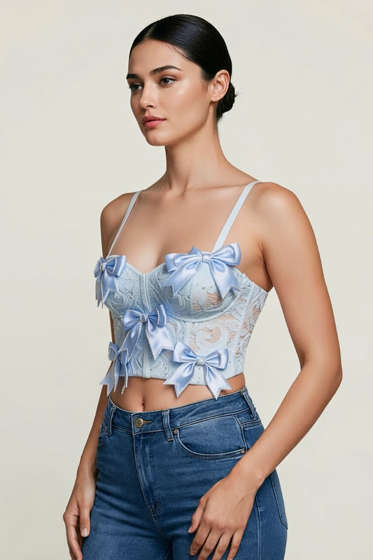 RHINESTONE EMBELLISHED BOW TRIMS BUSTIER CROP TOP