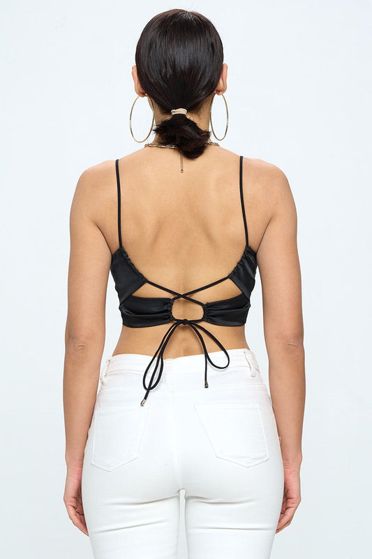 CUTOUT BACK CRISS CROSS SPAGHETTI STRAP CROP CAMI